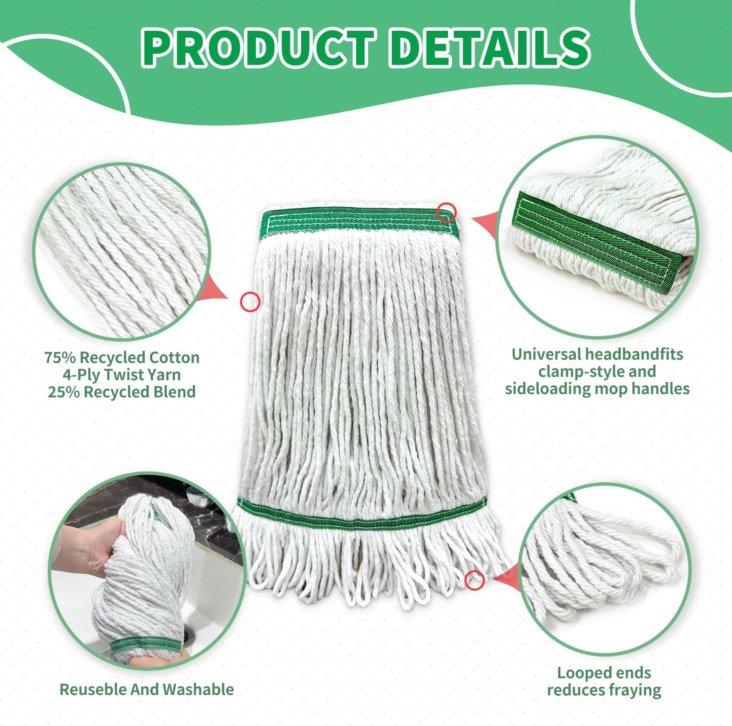 • High Quality Material: Made from 75% post-industrial recycled cotton and 25% recycled blend, High-density cotton rapidly absorbs liquids, and the thread head helps you to wring it out quickly; It withstands frequent use and heavy pressure, and effectively clean and dry the ground.