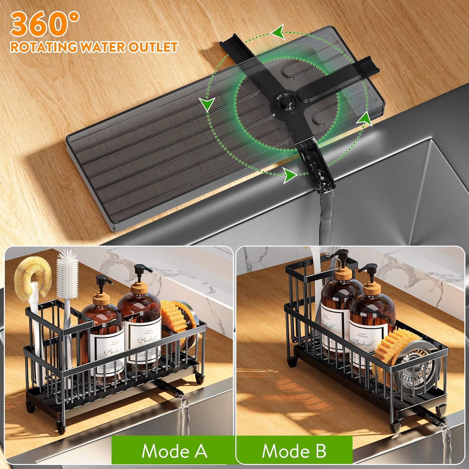 • 【STABLE DRAIN TRAY & AUTOMATIC DRAINAGE】The drain tray is fixed to the frame, so it won't come loose and drop when is use. Sloped design ensures fast drainage. This sink caddy is great for holding all the cleaning things and keeping water off the counter.
