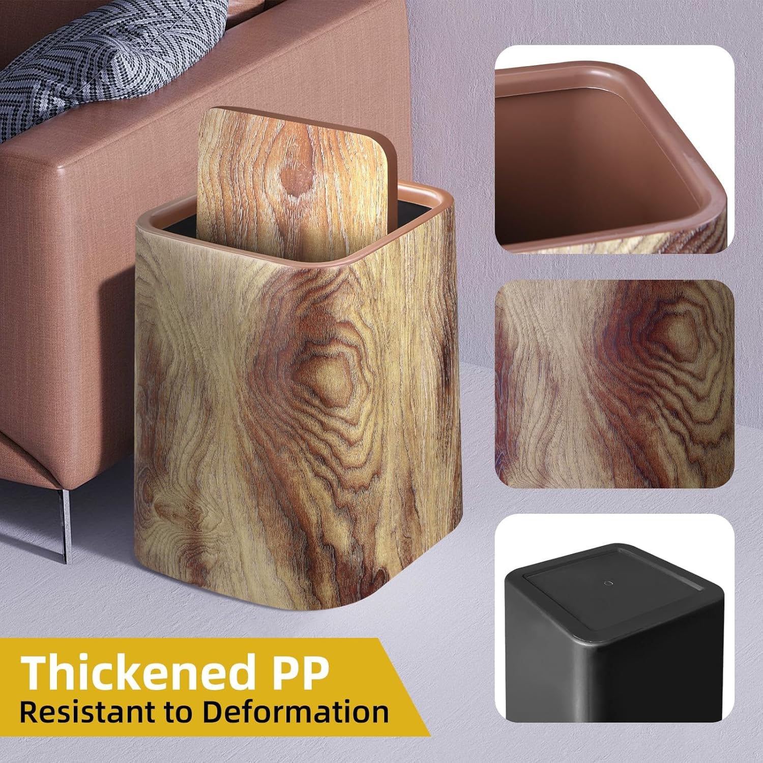 Wood Grain Plastic Trash Can Swing Top Lid, 4Gal/15L Farmhouse Wastebasket Bin Retro Style with Inner Bucket, Bathroom Trash Can Hidden Bag for Room Aesthetic, Square Brown Garbage Can 2pack