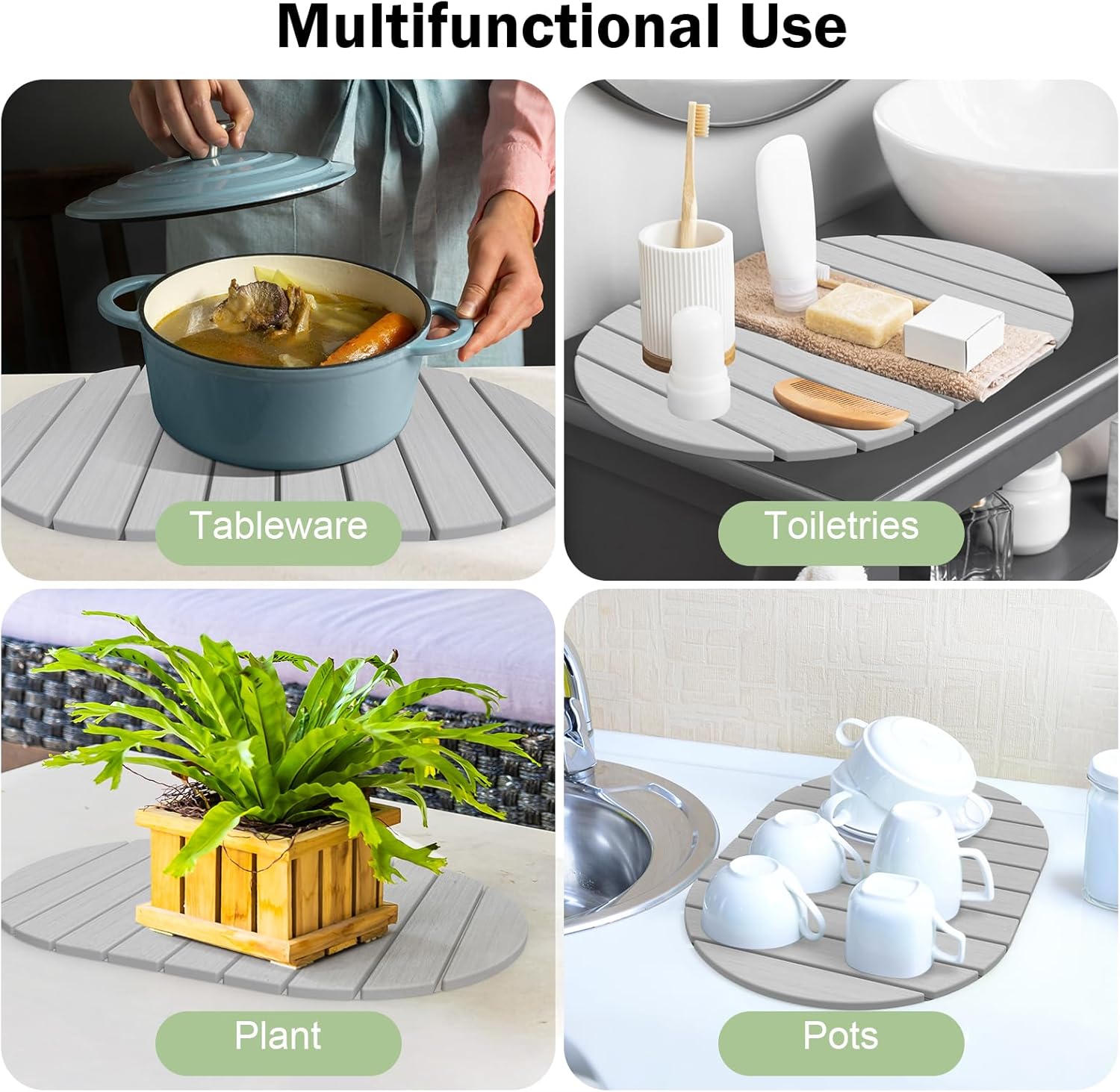 • Multifunctional and Practical: The kitchen drying mat is not only suitable for efficient drying of tableware, but also very suitable for conveniently placing potted plants, fruit, pet feeding mat, heat proof mat and stone bath mat