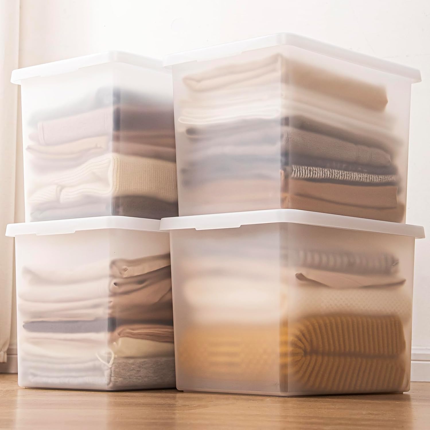 Stackable Plastic Storage Bins with Lids,Container to Organize Shoes and Crafts on Closet Shelves,Garage, Totes, Tubs Boxes Organizing 4 Pack (N-4XXL)