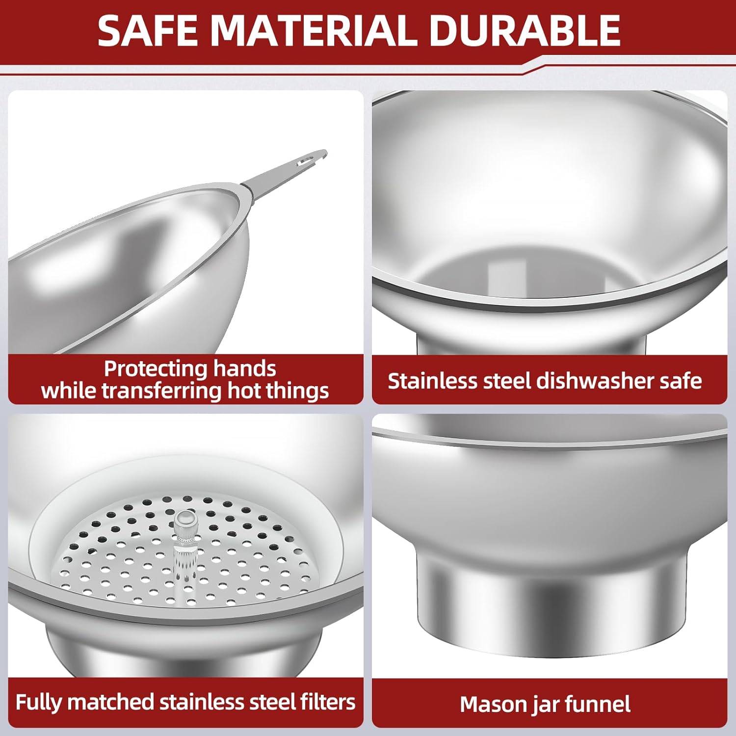 • A Must-Have Kitchen Essential :Durable and easy to use, Whether you're preserving homemade jams, pouring broth, or transferring dry goods, it helps streamline your process and keep your counters clean.