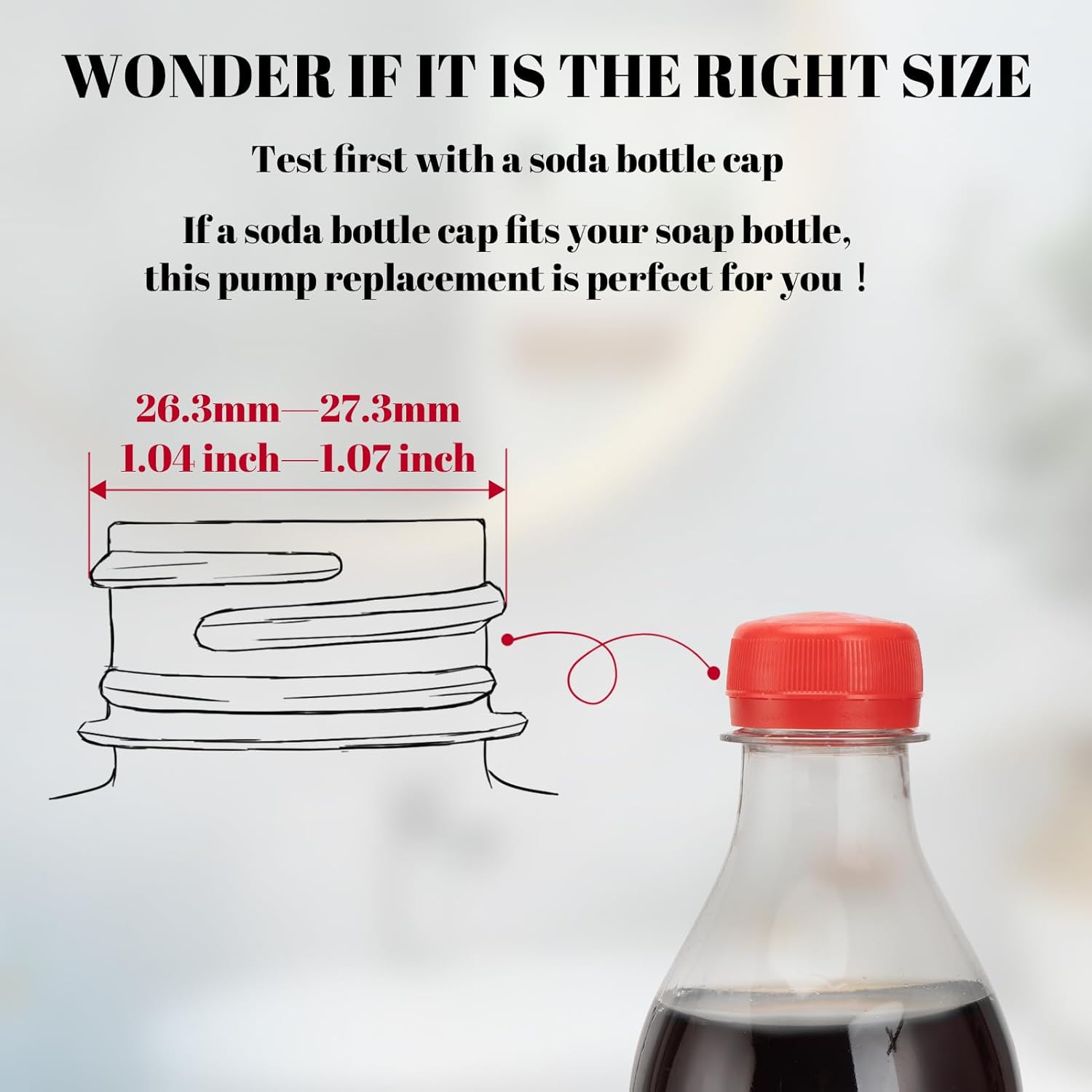 • STANDARD FIT - Standard size that fits most liquid pump bottles with 28/400 thread size. Test with a 2-litre coke bottle cap.If it fits, this pump is perfect for your lotion or soap bottle!