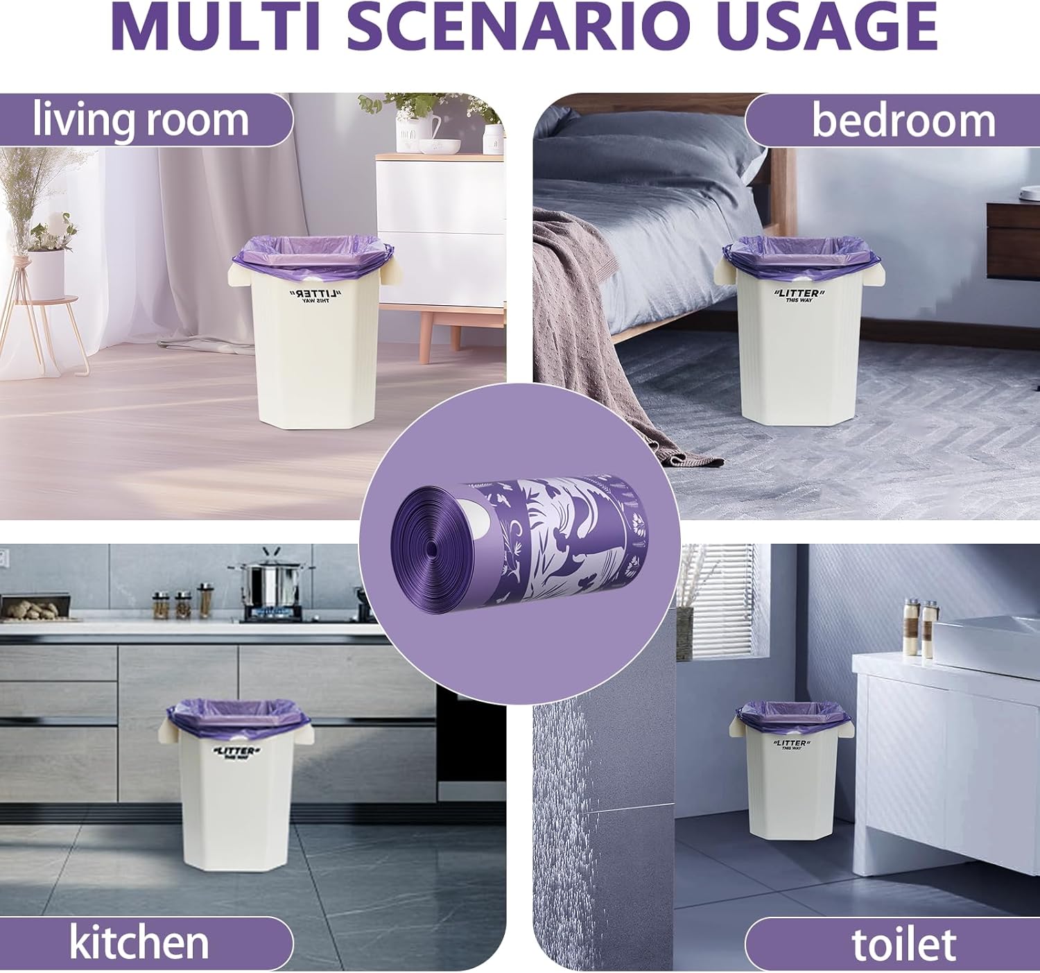 • 【Material and Smell】: All of our small garbage bags are made of HDPE material. This material can make the garbage bag stronger, we also added some lavender fragrance to the 8 gallon garbage bag, so the garbage bag will have a slight smell of lavender which can properly neutralize some of the garbage smell