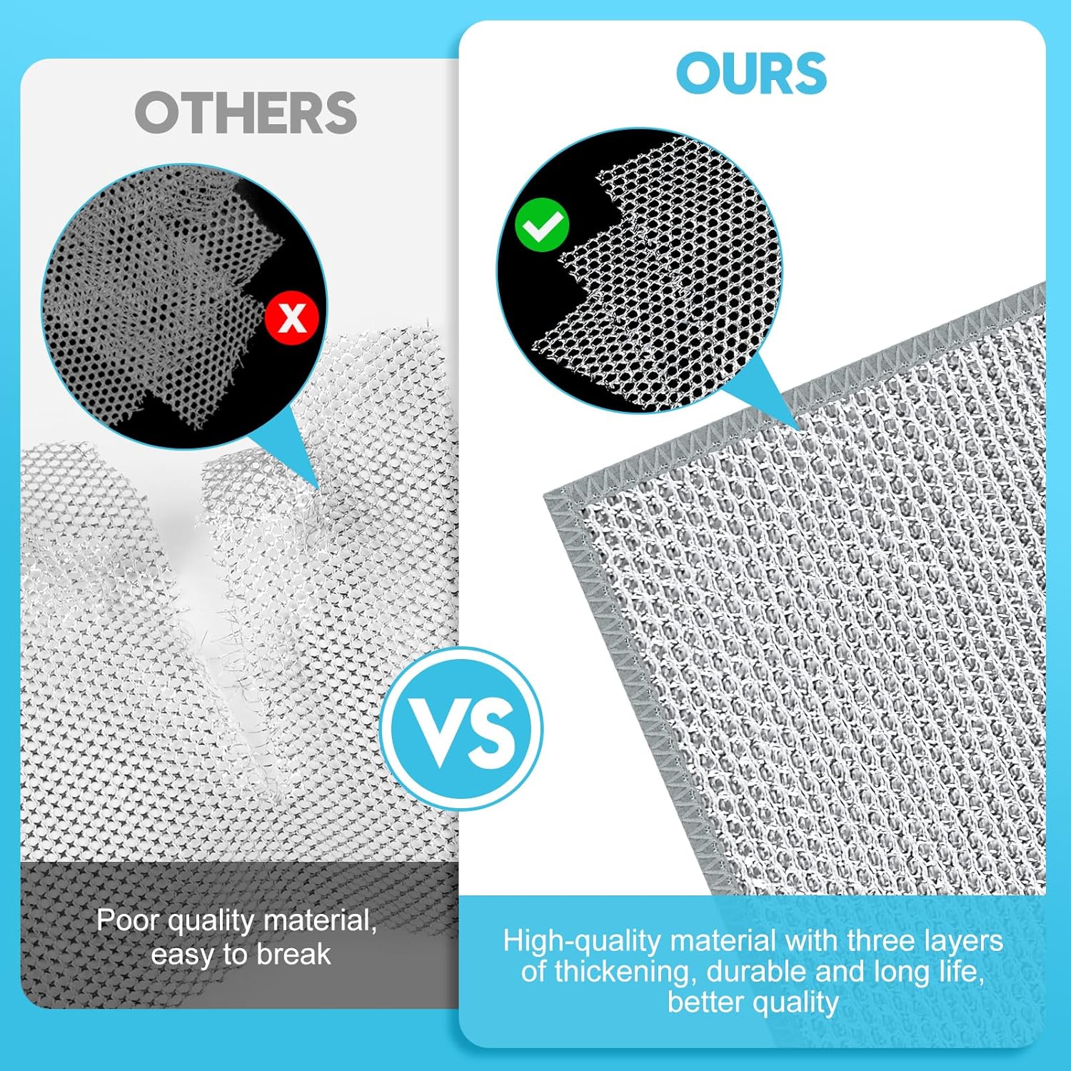 10 Pcs New Upgraded 3 Layers Non Scratch Wire Dishcloth, Multipurpose Wire Dishwashing Rags, Wet & Dry for Cookware, Sinks, Dishes, Stoves & Fireplaces 7.87“ x 7.87”