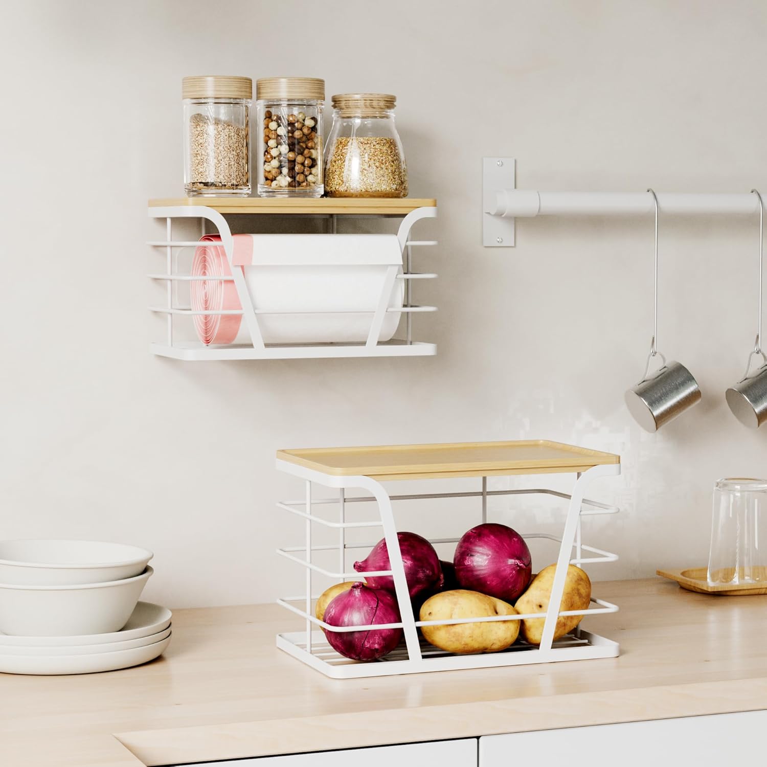 • Versatile Use for Home Organization:From pantry organization to laundry room storage. Assign the large garbage bag dispenser under sinks, use the small wall basket for kitchen sink accessories, or mount both as apartment organization