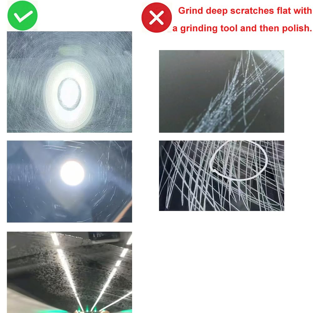 • 3. ✏️ Gently Reduces Light Scratches & Swirl Marks Designed to polish away surface-level scratches and fine swirls (not deep gouges) — restores smoothness and optical clarity without damaging the glass.