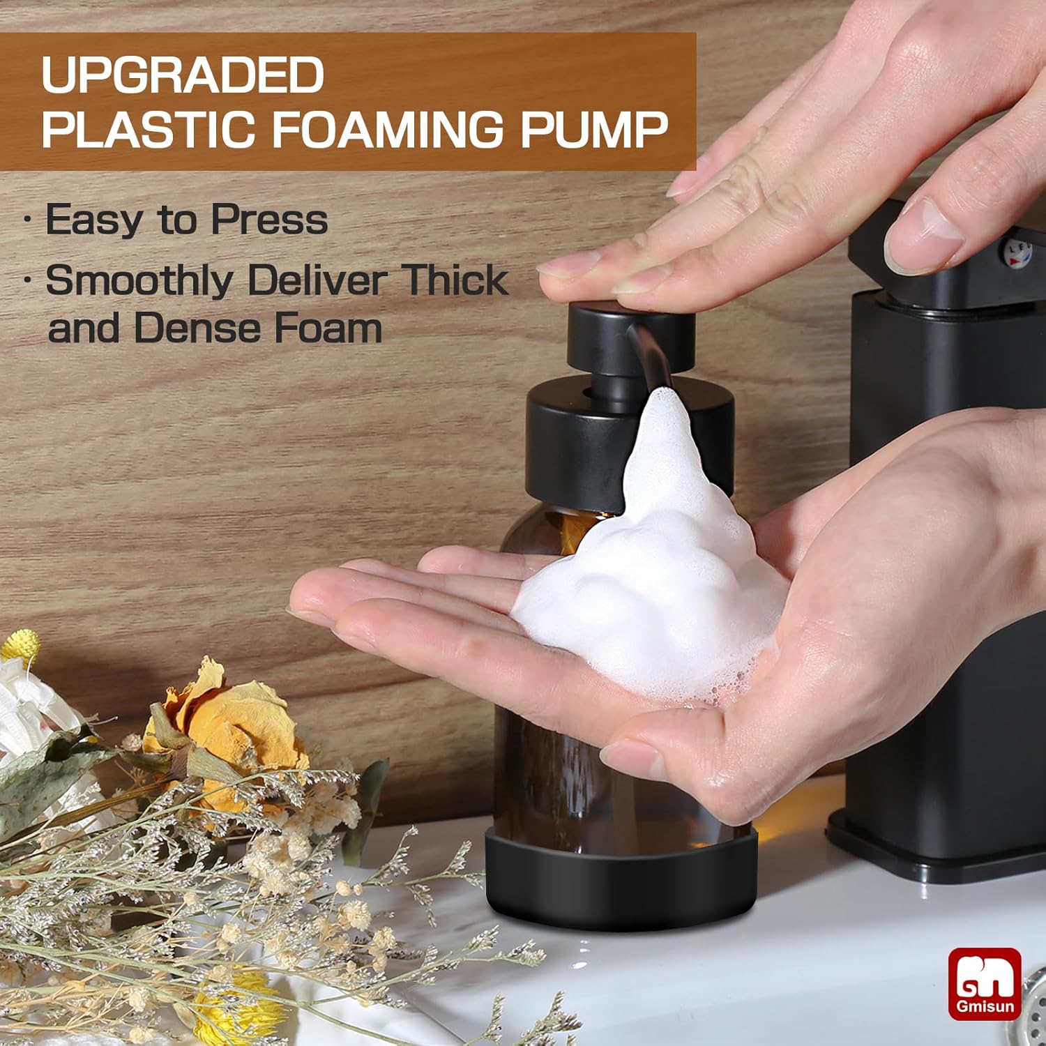 GMISUN Amber Foam Soap Dispenser, 8.5 Fl oz Amber Glass Foaming Hand Soap Dispenser for Bathroom & Kitchen, 2 Pcs Modern Refillable Foaming Soap Dispensers, Foam Pump Bottle with Label & Silicone Boot