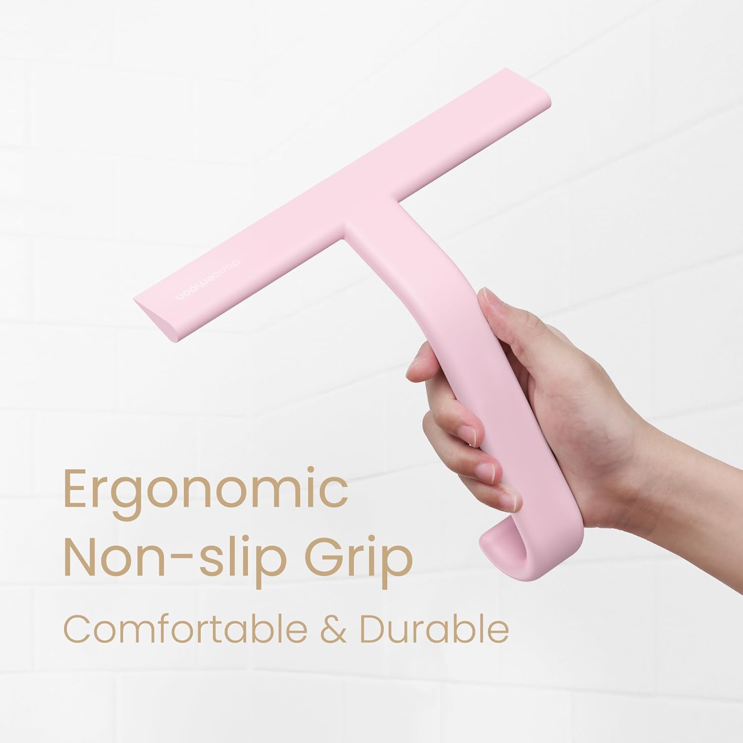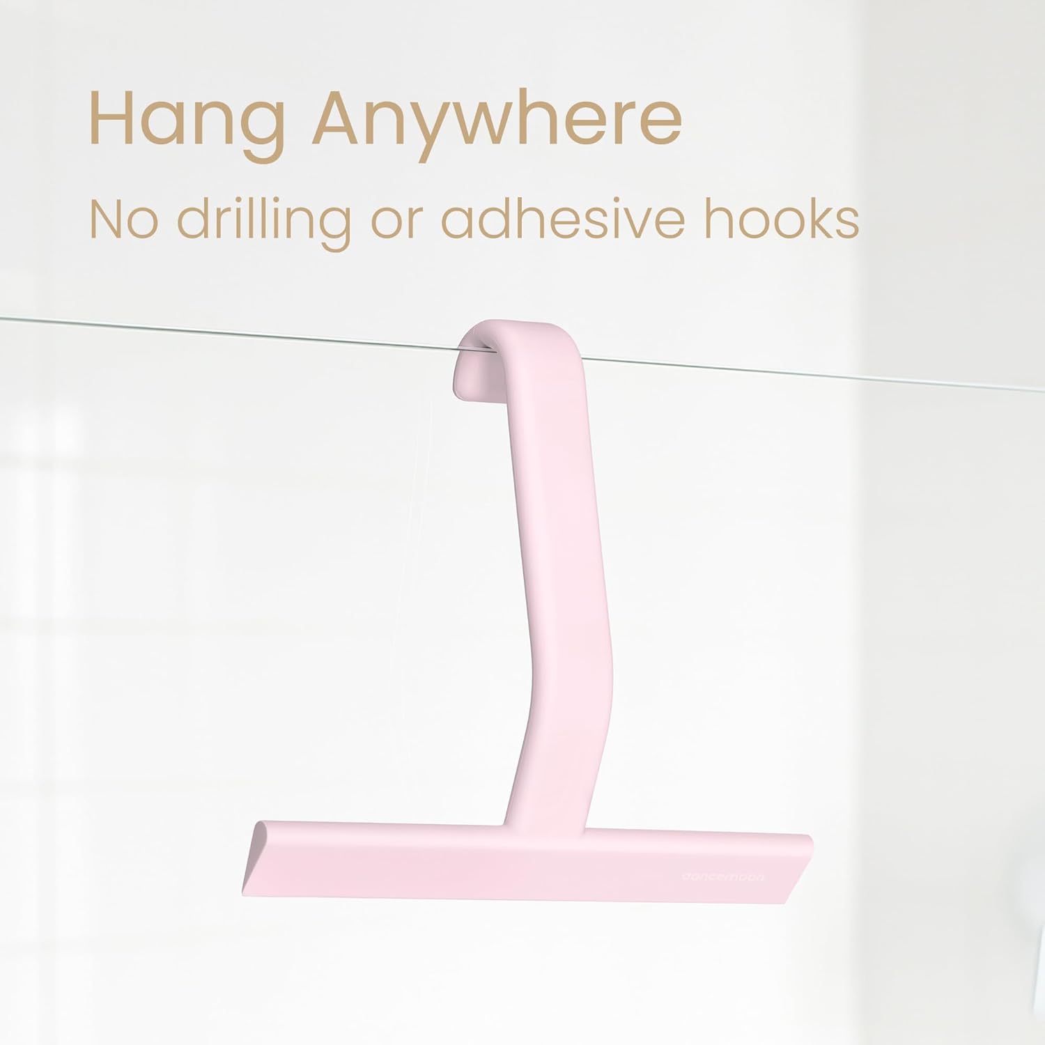 dancemoon JustHang Shower Squeegee for Glass Doors, All-one-Piece Silicone with Built-in Hook Design for Easy Hanging and Cleaning, 10 Inch Pink