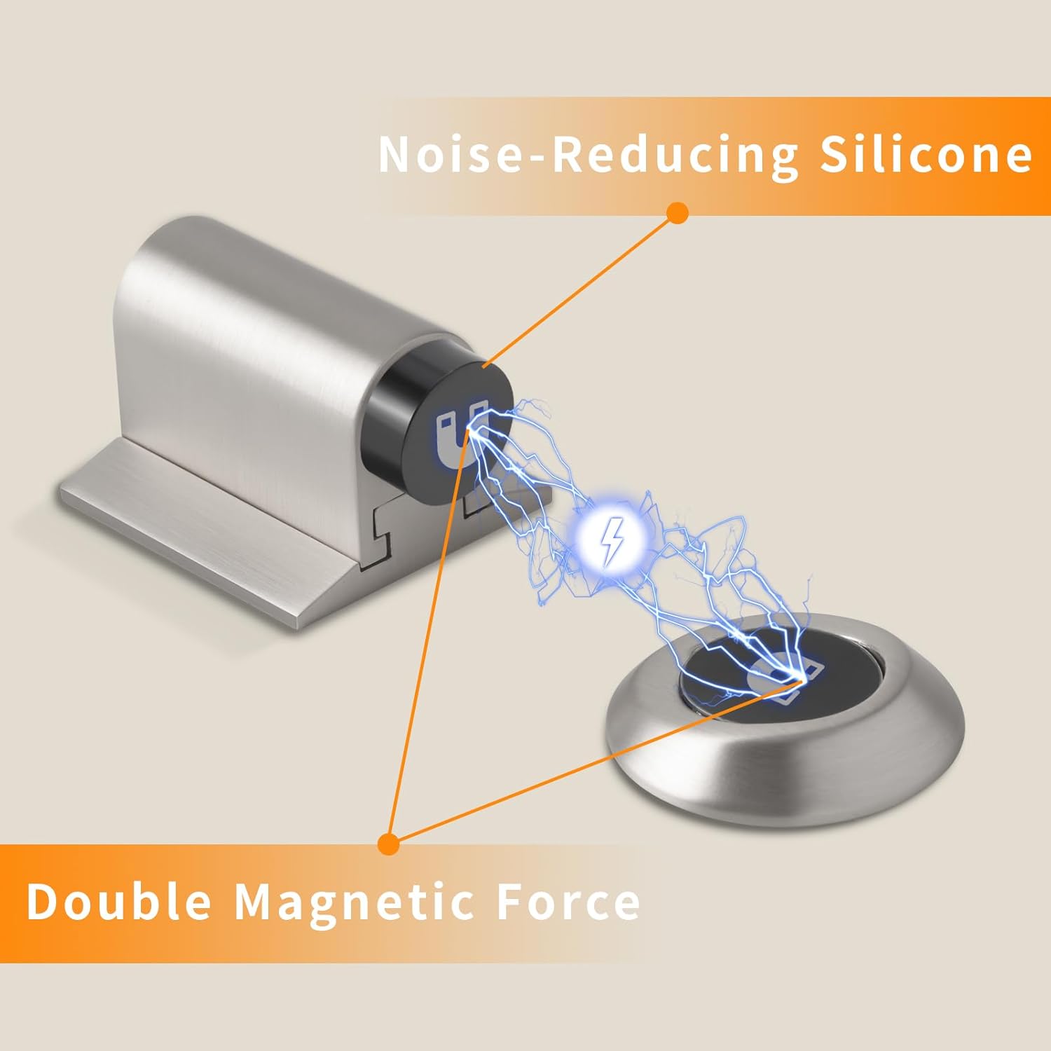 • DURABLE DESIGN: This door stopper is made of high quality zinc alloy and features a dual magnet design for strong suction, it has a soft snap feature to minimize noise, and an electroplated surface to prevent scratches and ensure durability.