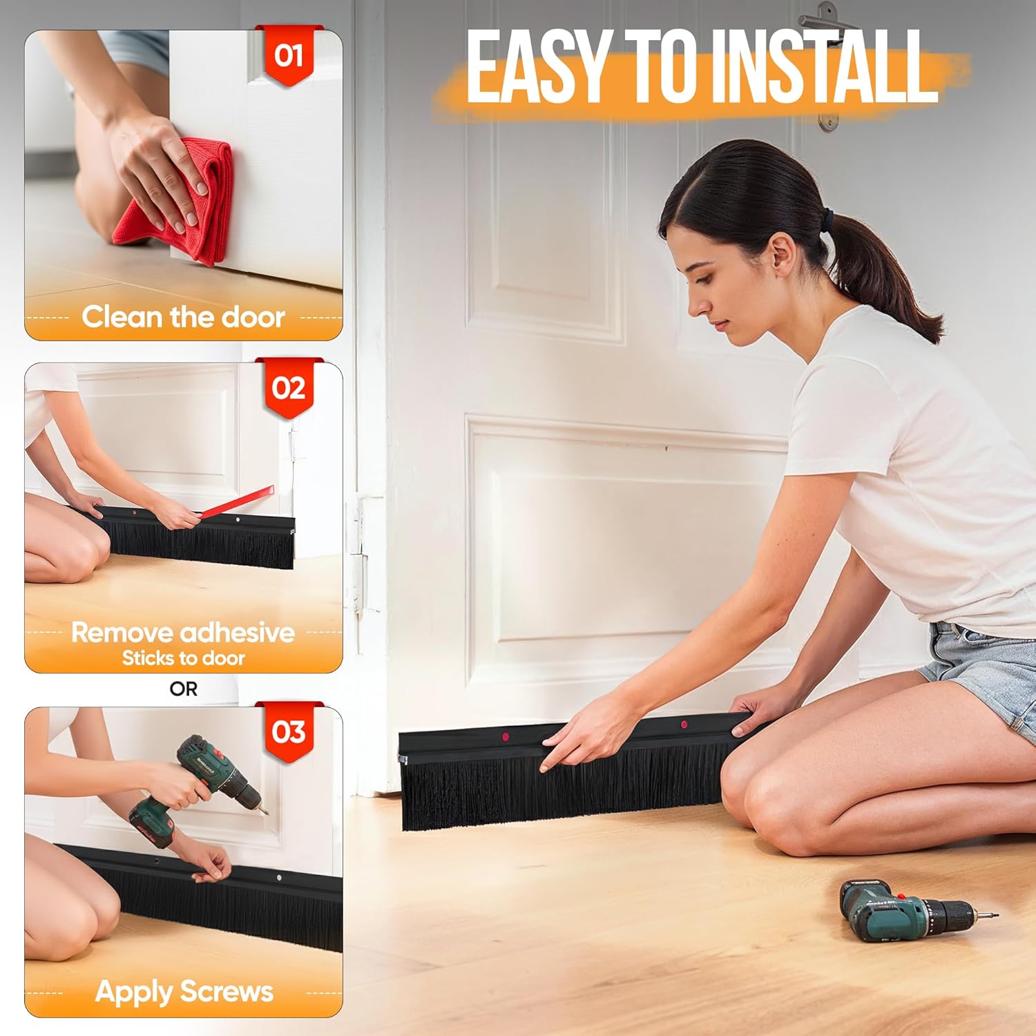 - ๐๐น๐ผ๐ฐ๐ธ๐ ๐๐๐๐, ๐๐๐ด๐ & ๐ฅ๐ผ๐ฑ๐ฒ๐ป๐๐: Acts as a reliable door seal strip bottom and door gap filler bottom, blocking dust, insects, and allergens to keep your home clean and fresh. Can also be paired with excluder mesh for rodents for extra protection against pests.