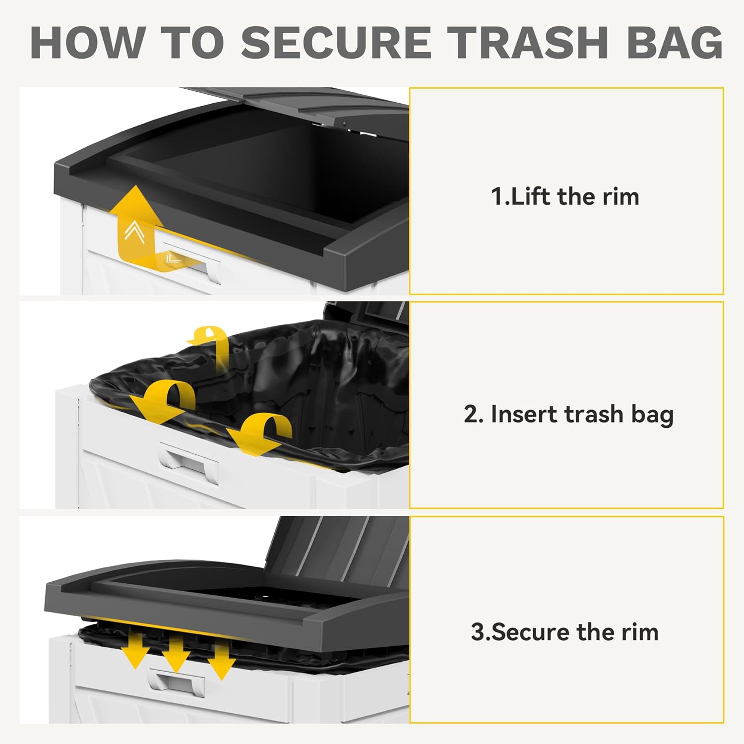 • Easy Setup in Minutes: Assemble this trash can with lid in just 10 minutes with no tools needed; Just snap panels together effortlessly; A clear manual ensures fast setup for your kitchen, patio, or outdoor gathering