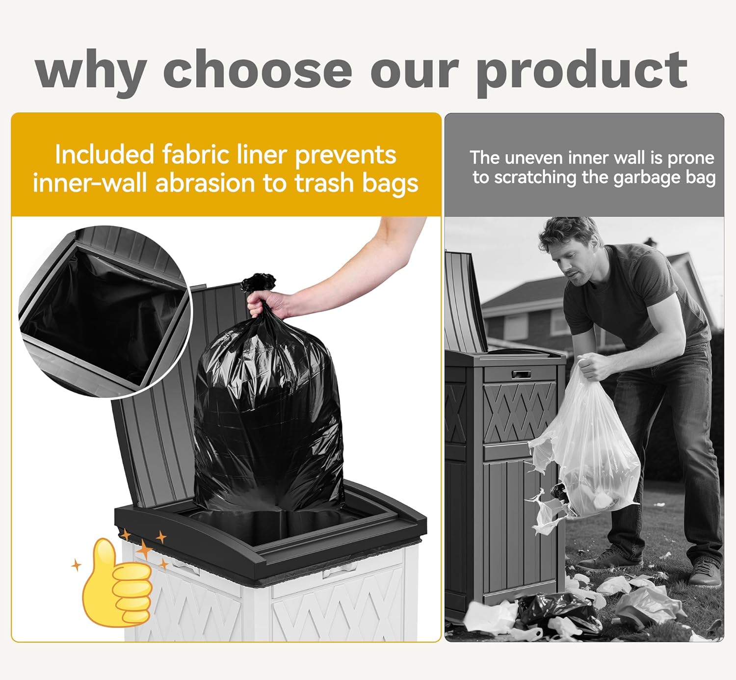 • Ultimate Liner Protection: No more frustrating rips; This outdoor trash can includes a durable, waterproof 210D Oxford fabric bag (80*120cm) designed to sit inside, shielding your garbage bags from tears