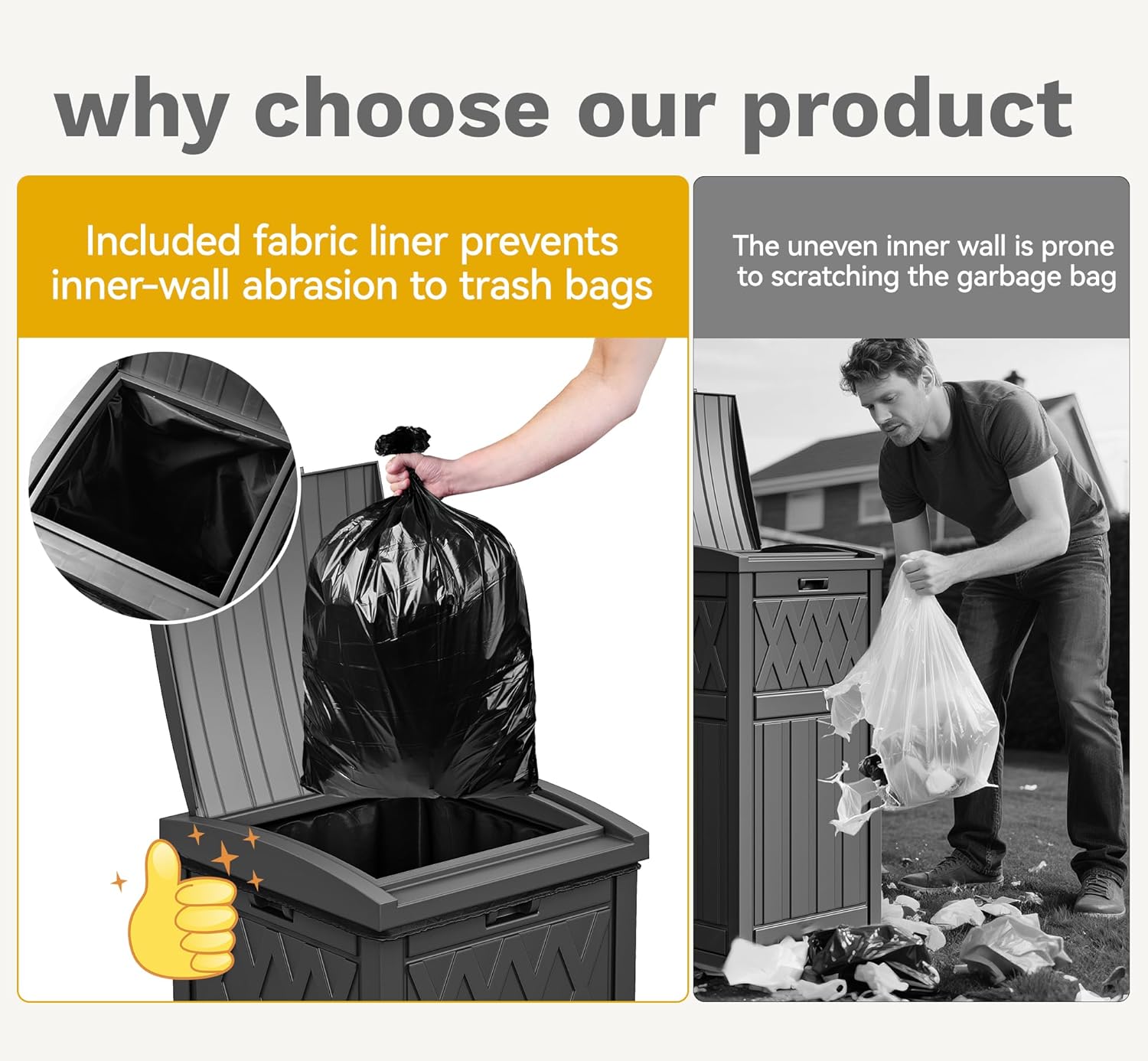 • Ultimate Liner Protection: No more frustrating rips; This outdoor trash can includes a durable, waterproof 210D Oxford fabric bag (80*120cm) designed to sit inside, shielding your garbage bags from tears