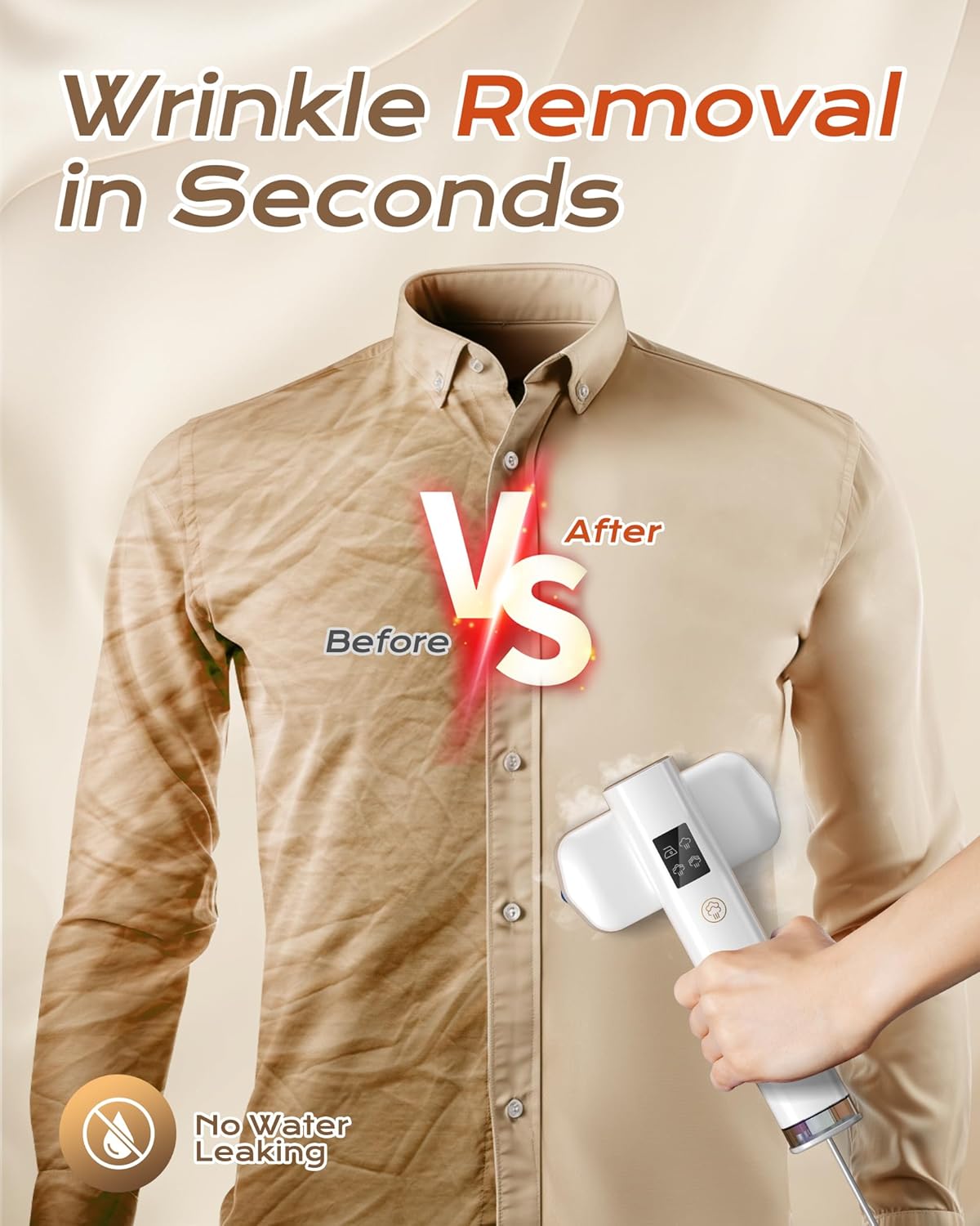 - 【Safe & User-Friendly】The clothing hand held steamer adopts Leak-Proof technology, ensuring no water leaks during use, keeping your clothes safe from water stains. Featuring an intuitive LED display and heat-resistant panel. Get clear operation prompts and comfortable handling for a hassle-free steaming experience. Includes steamer*1, Water tank*1, Storage bag*1, Measuring cup *1 , Heat insulated base *1 , User manual *1