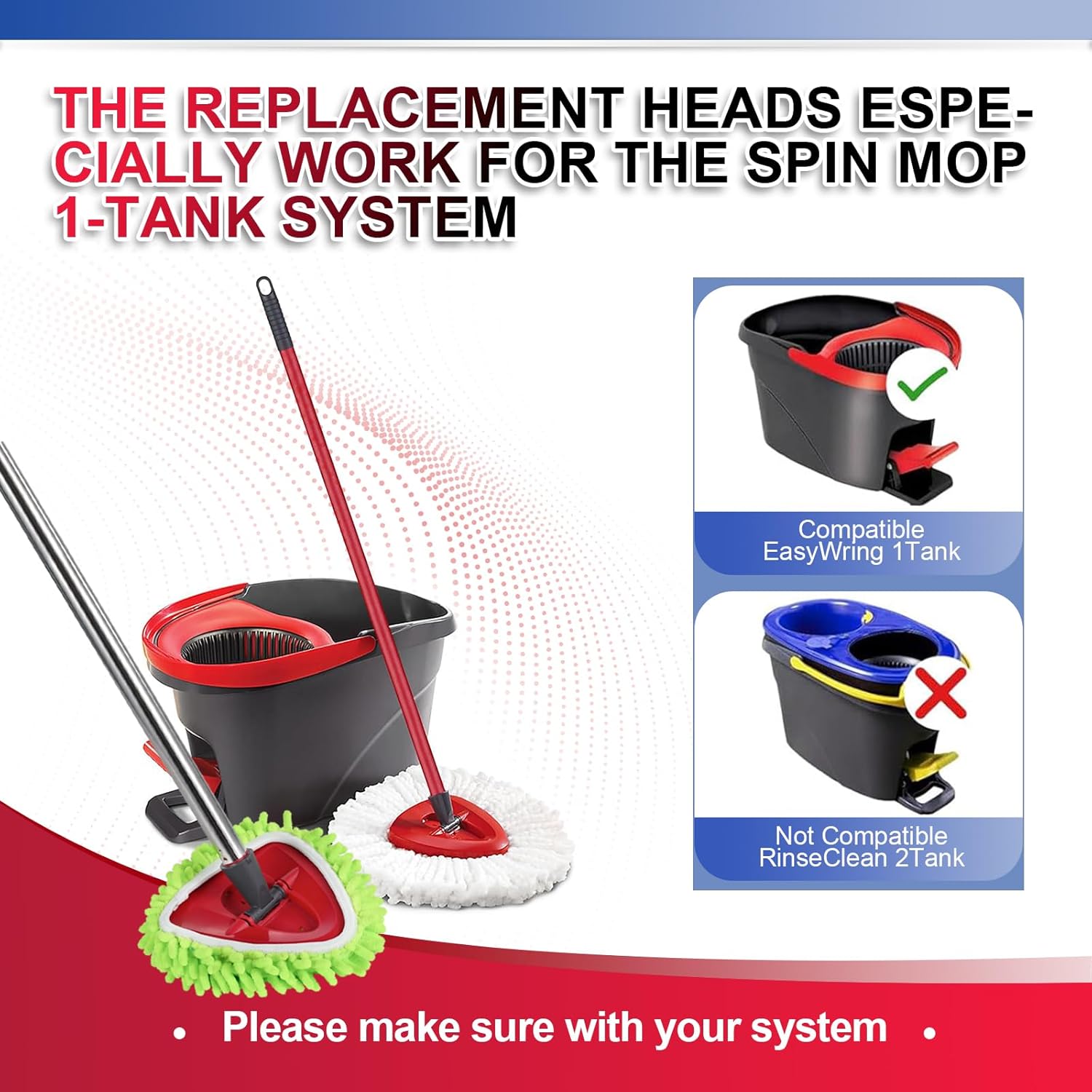 • Package Included:Upgraded brush.There are 3 Elastic Green Mop + 2 White Microfiber Spin Mop Head + One Scrub Brush + One Base.All the head are for O-Ceda EasyWring Microfiber Spin Mop,compatible with Ocedar 1-Tank system, NOT for 2-Tanks Rinse Clean system.Double replacement use together,provide the deep cleaning.