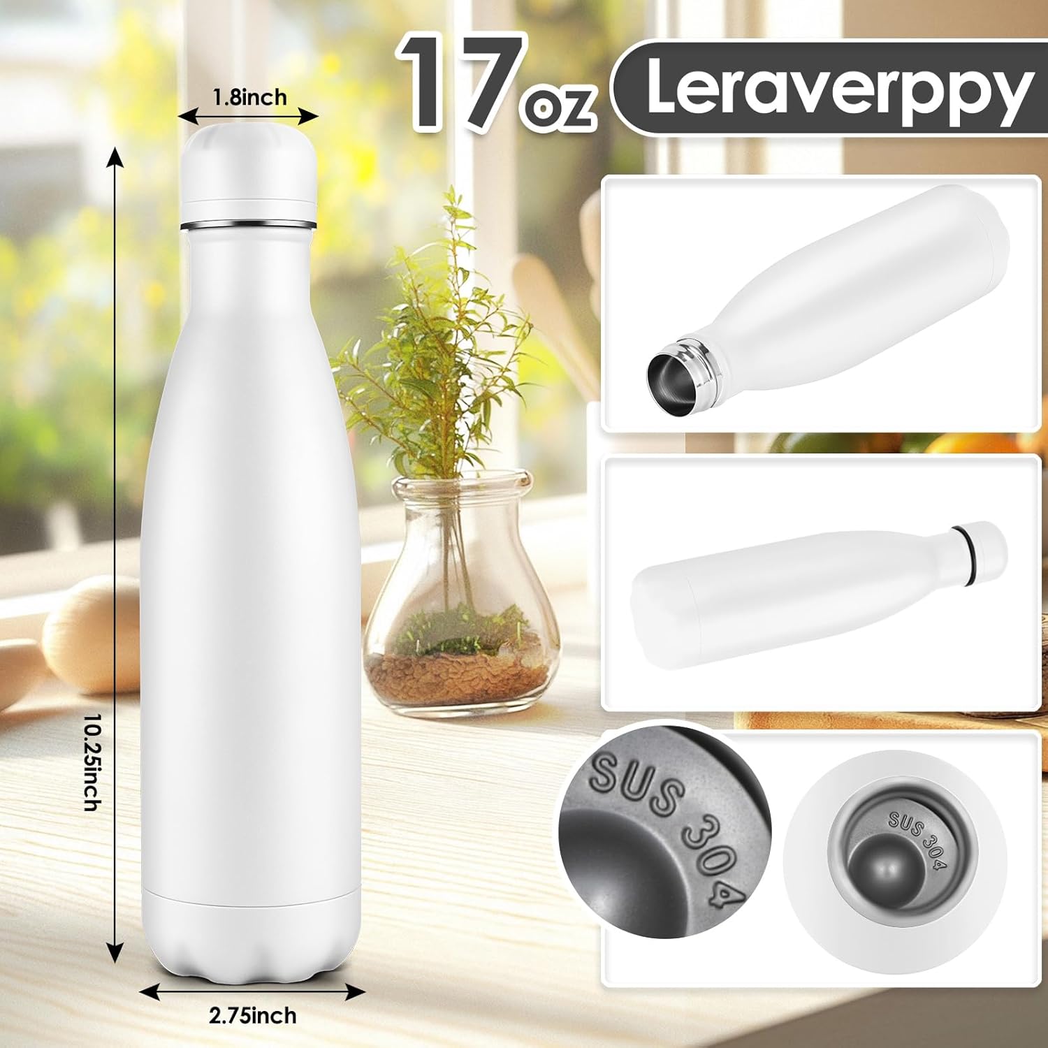 17oz Cola-Bottle Shaped Stainless Steel Leak-proof Water Bottle,Double Wall Vacuum Insulated Metal,Travel Mug For Sports Indoors & Outdoors,BPA-Free School Kids Flasks,White(12Pack)