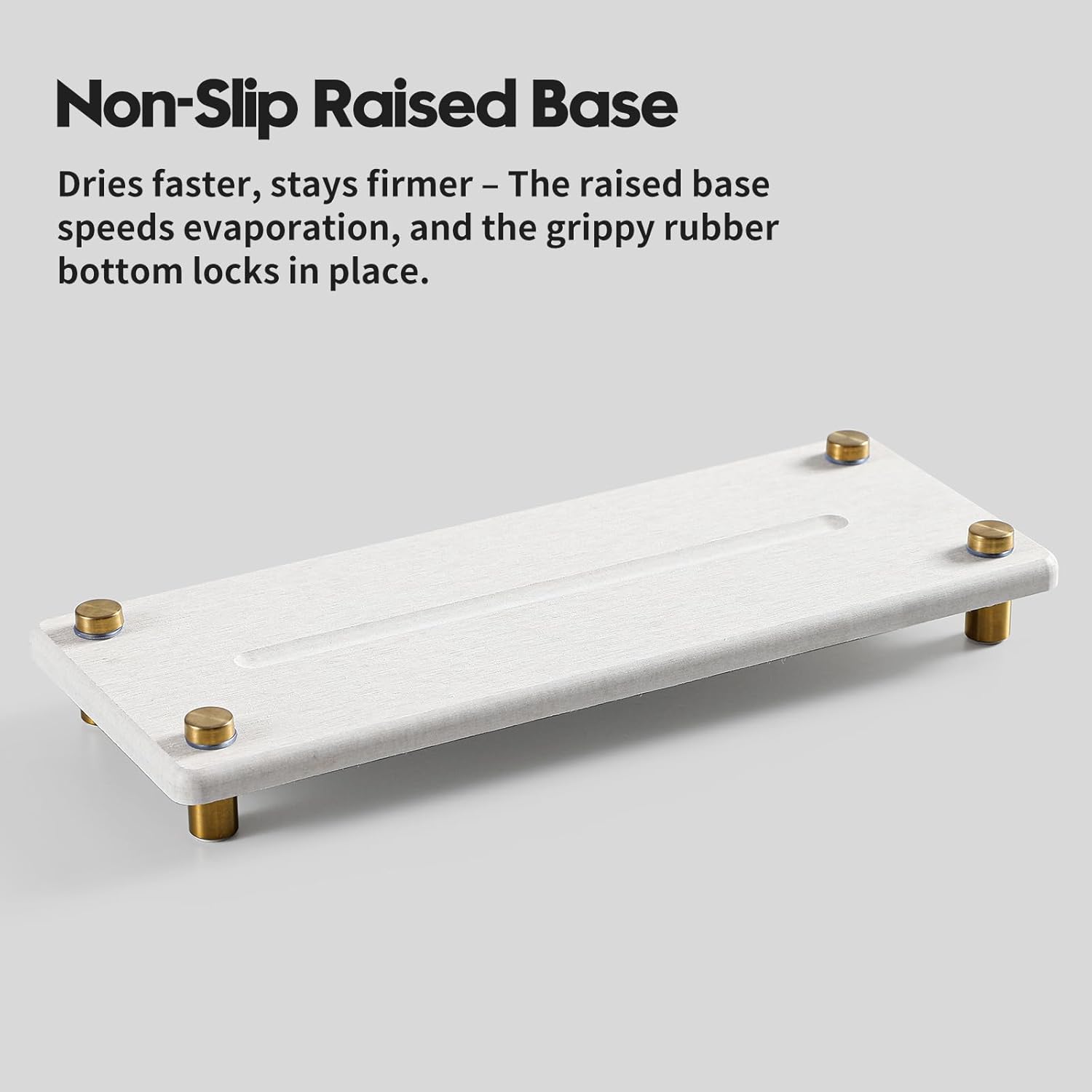 • 【Multifunctional Water Absorbing Stone Tray for Sink】 Using this tray for your soaps and brushes in the bathroom, or by the kitchen sink. The fast drying sink caddy provides you with a neat and orderly space for your home.