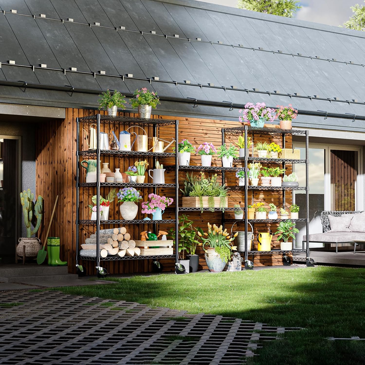 - 【Multi-Functional for Any Space】Whether it’s in the garage, kitchen, pantry, basement, laundry room, balcony, or office, this metal storage rack adapts to any environment. Use it to organize tools, cleaning supplies, office equipment, or food storage—it’s the ultimate all-in-one storage solution.