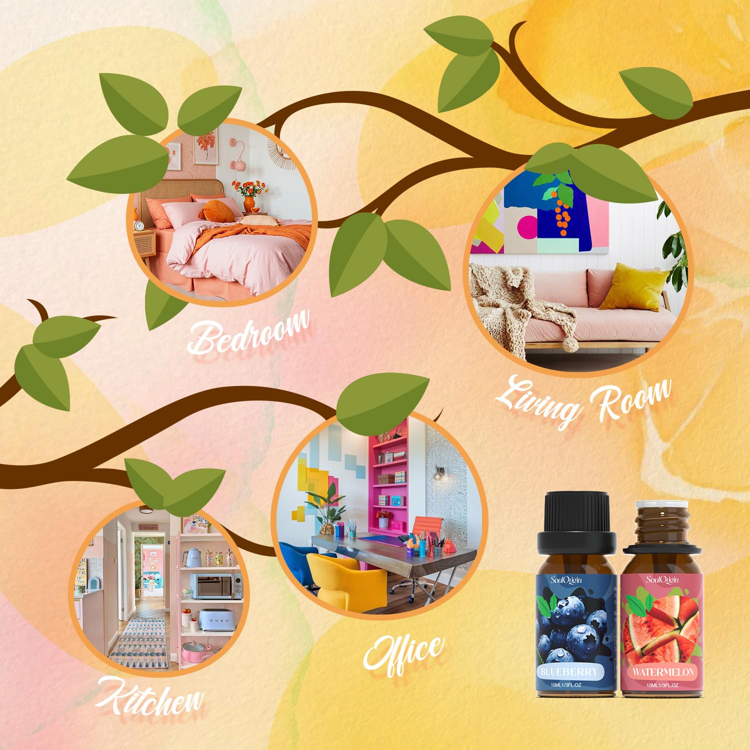 • Brighten Your Space: Add a splash of sunshine to your day with fruit essential oil blends that fill your home with cheerful, uplifting aromas. Perfect for creating a joyful, energizing environment—these fruity scents are ideal for kitchens, living rooms, bathrooms, and anywhere you want to feel refreshed.