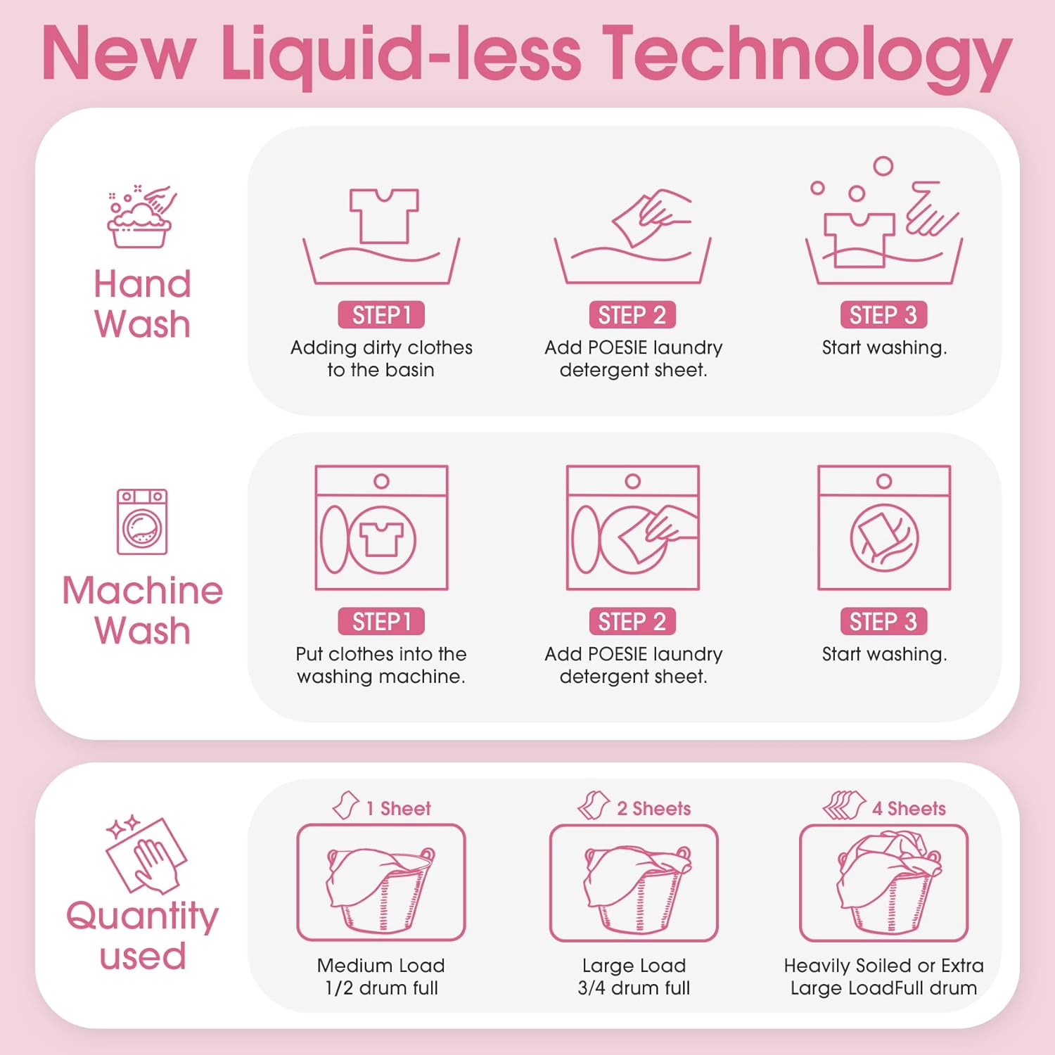 • Easy to Use - Liquidless detergent sheets, 1 sheet for small or medium loads where clothes are not very dirty, 2 sheets for large loads and 4 sheets for extra large loads, no waste. Not too little and not too much to save resources