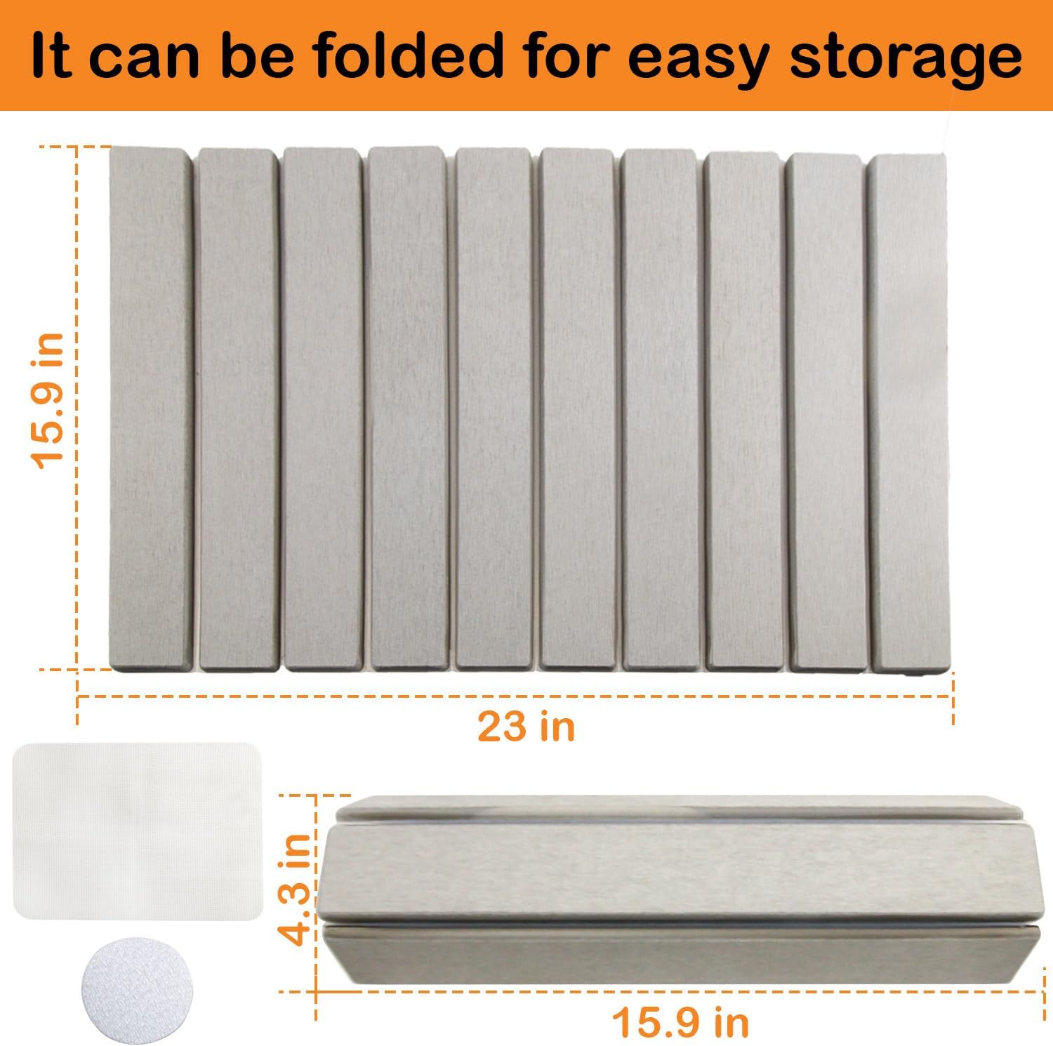 • Effortlessly dry dishes, wine glasses, bottles, or bulky cookware on this generously sized 23" x 16" mat. When done, fold it down to a compact 16" x 5" for tidy storage in drawers or under sinks—perfect for small kitchens or on-the-go use during camping trips.