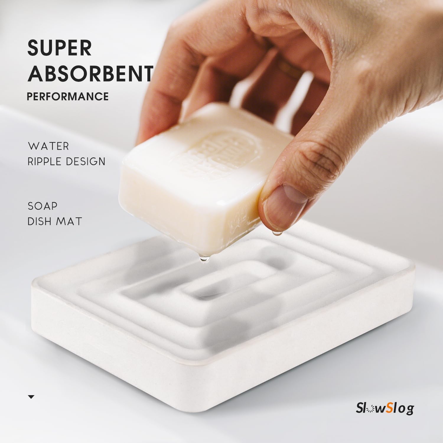 • Multi-Functional Use: This diatomite soap tray works perfectly in any wet area-The absorbent mat securely holds various items like soap, toothbrushes and kitchen tools, Ideal for bathroom vanities, kitchen counters,helping maintain an orderly and dry surface in any living space