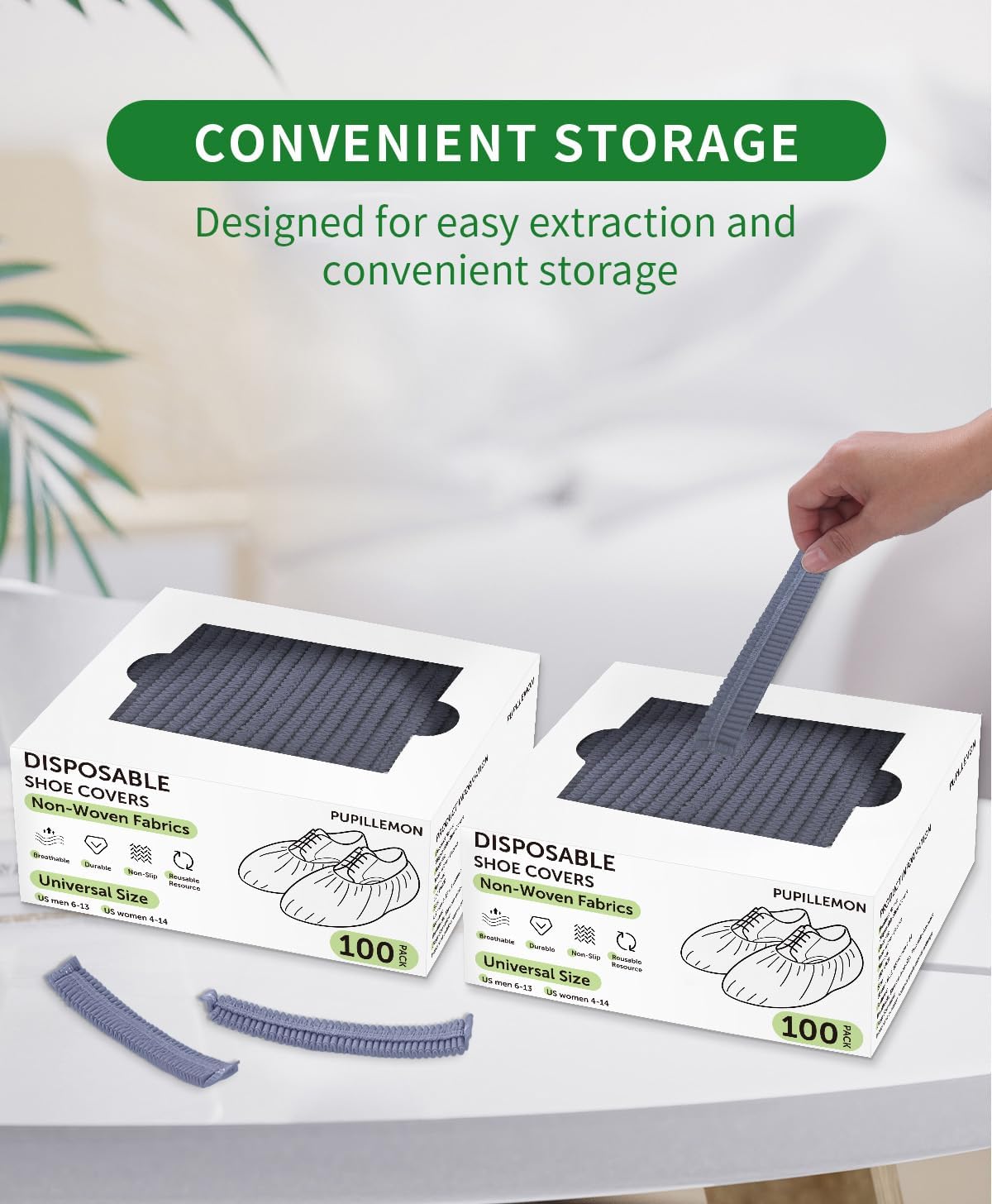 200Pcs(100 Pairs) Non-Woven Shoe Covers Disposable Non Slip for Indoors, Breathable | Durable | Boot Covers, Fits Up to Size 13 US Men (Gray)