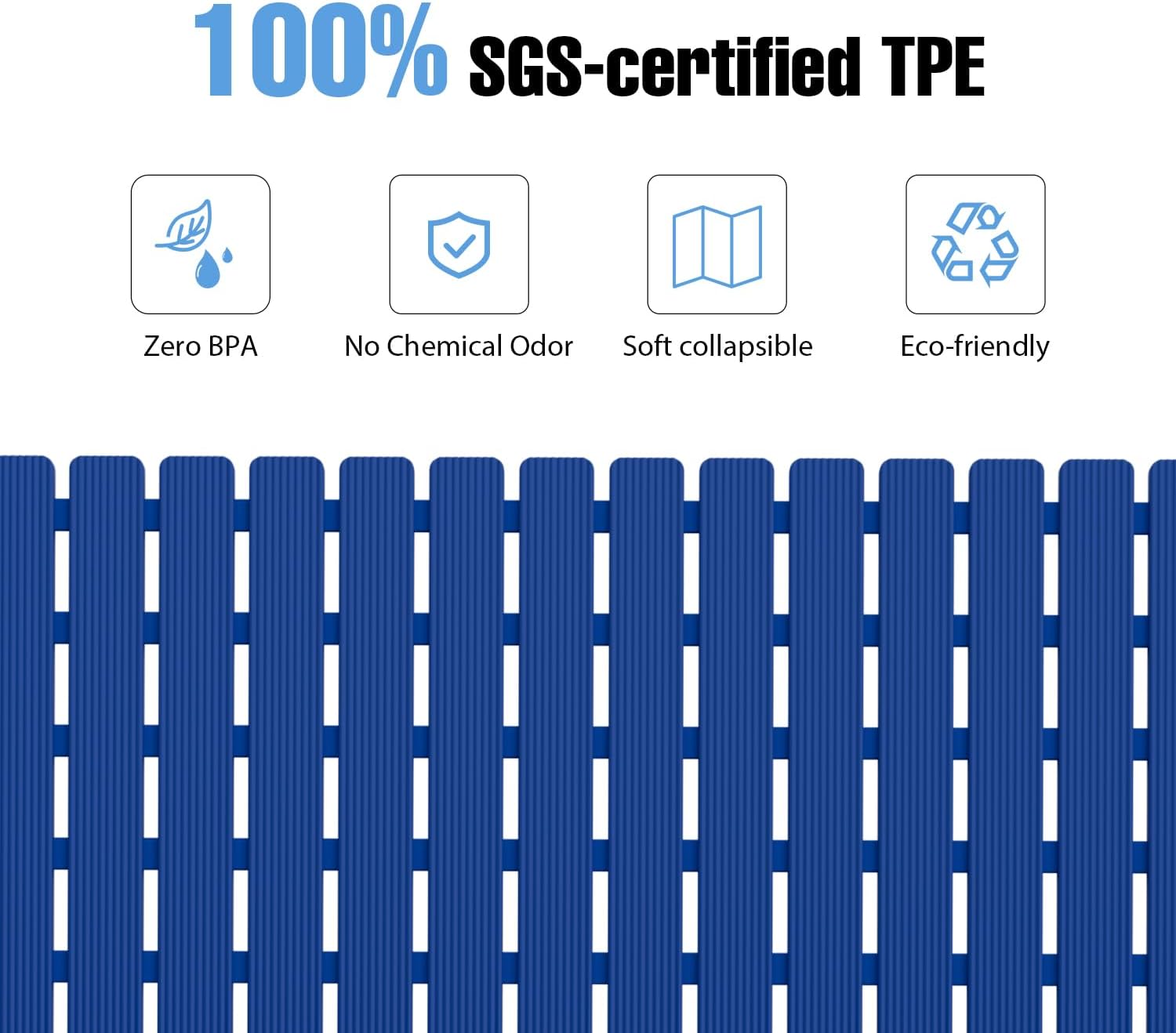 • SGS-Certified TPE: This non-slip bath mat for shower/tub is crafted with 100% SGS-certified TPE (Test Report NO.CANEC25008026405), featuring Zero BPA & Chemical Odor,trusted by 12,000+ Families for Baby Bath Time Safety.