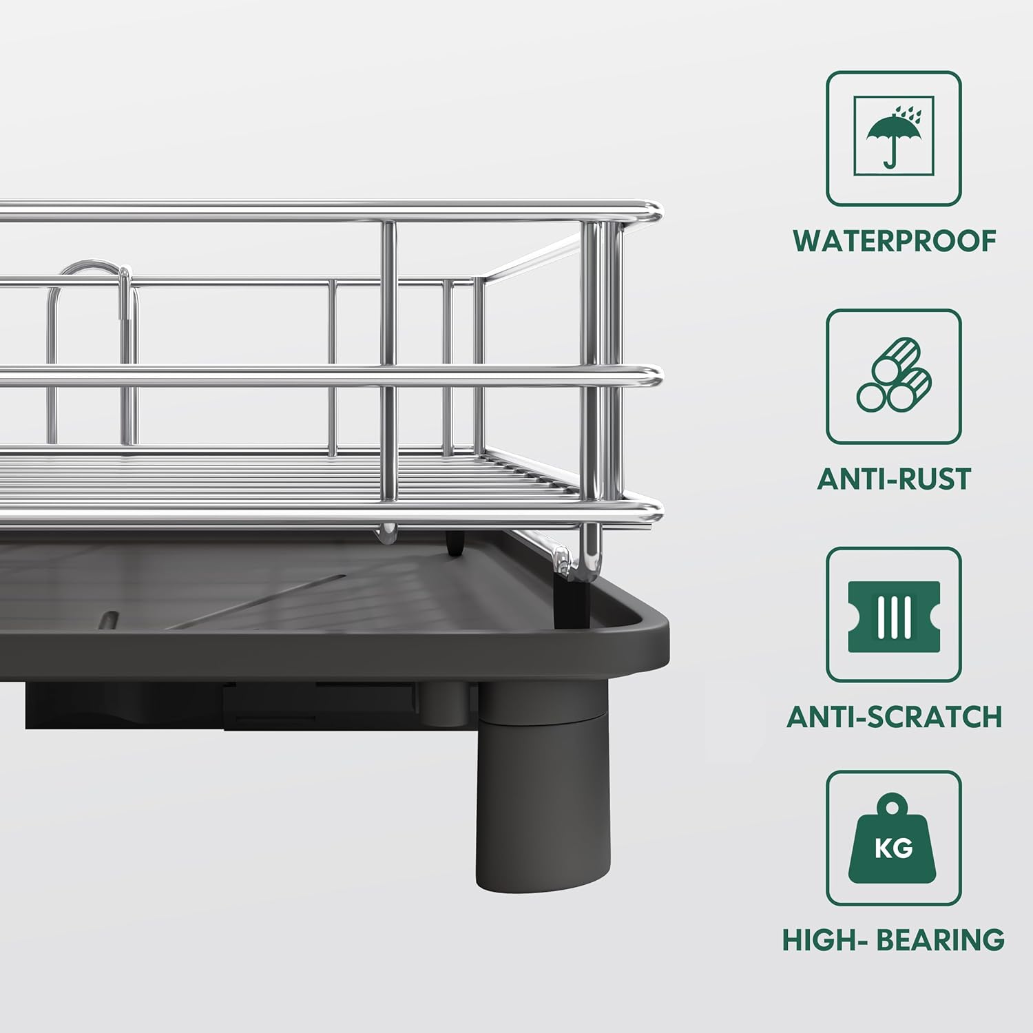 • Heavy Duty Rust Resistant Metal Dish Drying Rack: Constructed from durable metal with an anti-oxidation coating. Withstands the rigors of daily use without bending, peeling, or showing signs of wear over time