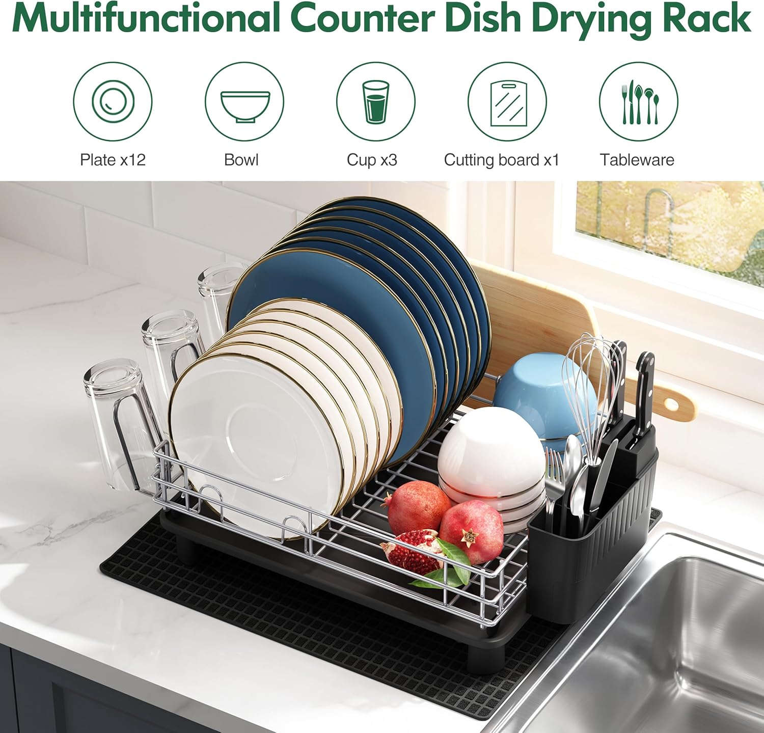 • Compact Dish Rack for Small Kitchen Counters: Measures 15.9"x11.8" to fit narrow spaces easily while providing ample drying capacity while keeping your countertop clutter free