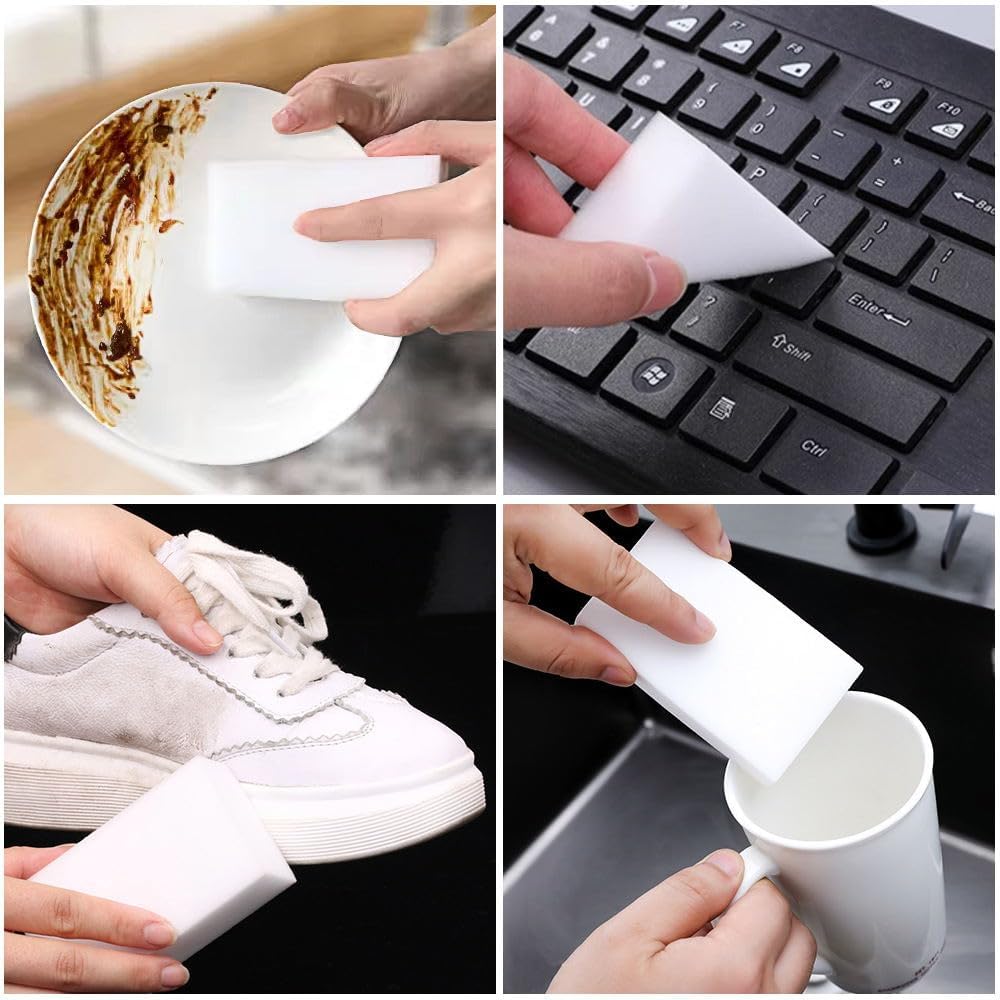 • MULTIFUNCTIONAL CLEANER: Our unique sponge can easily remove grease, dirt and dust from kitchen utensils, such as blenders, coffee machines, toasters, storage containers, clean glass, leather products, shoes, car interiors, office supplies , Floors, tiles, etc.Please note:Don't scrub hard.Do not rub the skin, so as not to damage the skin.Do not use it on shiny polished surfaces such as cars, PC screens, etc
