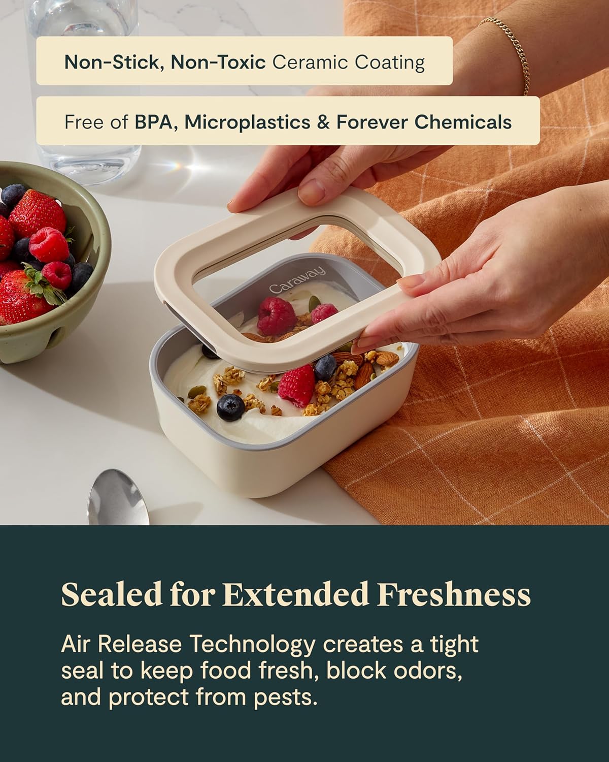 • NON-TOXIC & ECO-FRIENDLY MATERIALS: With a ceramic-coated surface, these containers are free from BPA, PFAS, and other harmful chemicals, ensuring safe and sustainable food storage.