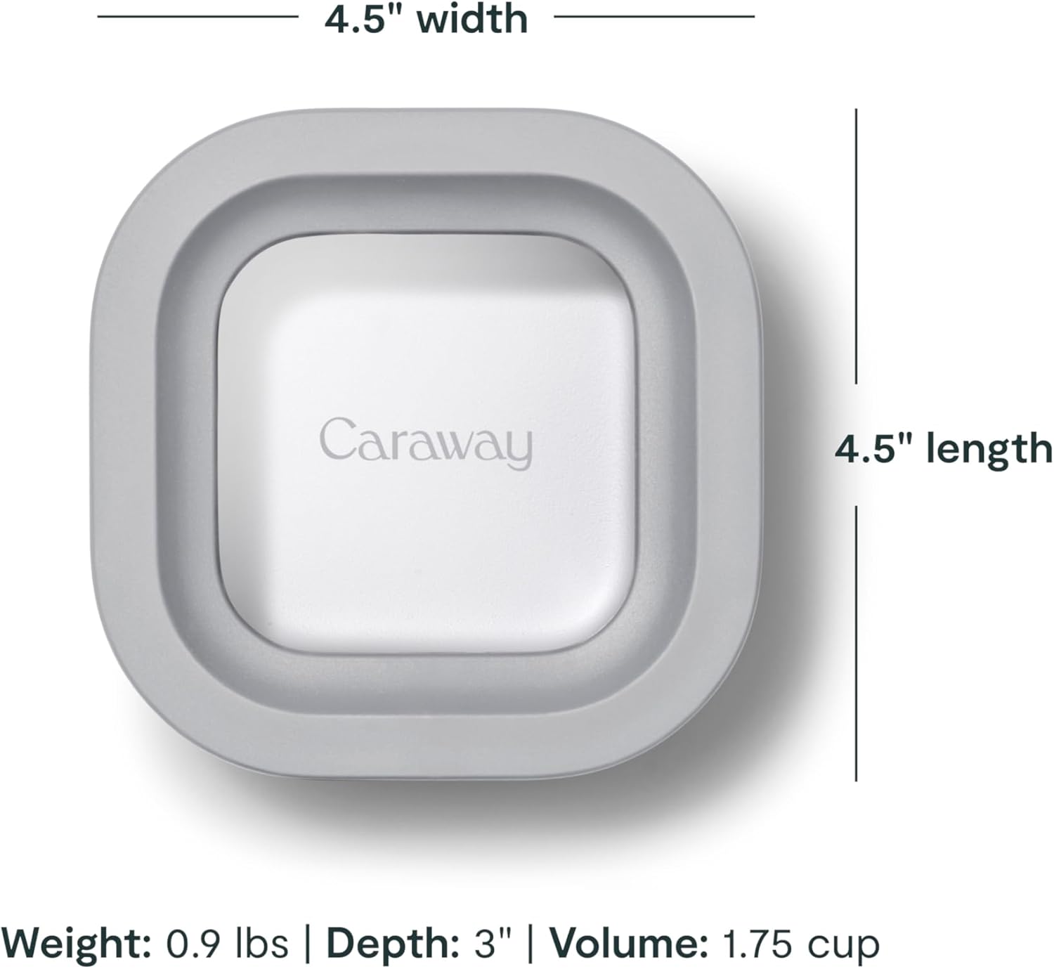 Caraway 2pc Glass Food Storage Set - 1.75 Cup Food Containers (2) - Non-Toxic Ceramic-Coated Glass - Air Release Technology - Compact & Stackable Design - Gray