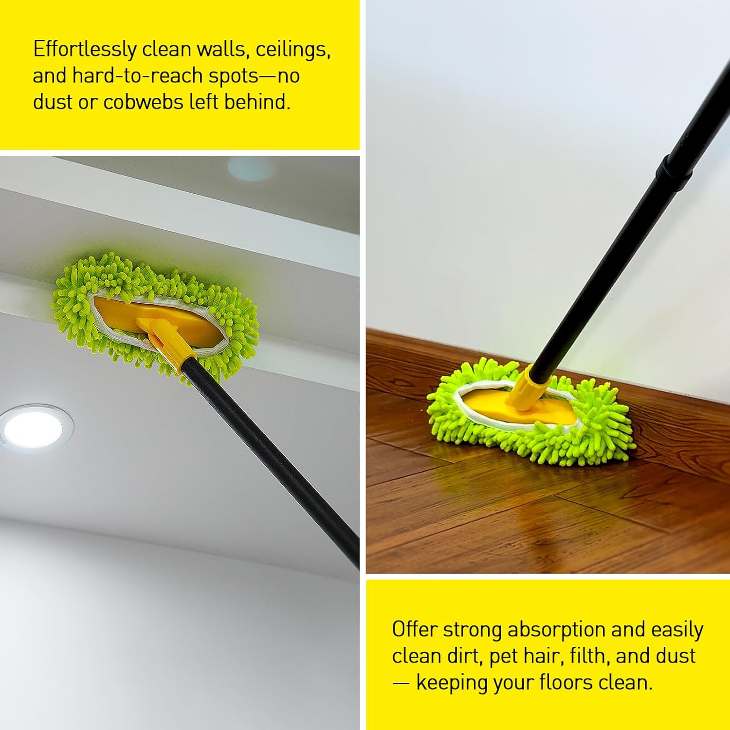 • 【What You Get】 1x V-shaped scrub brush head, 1x Microfiber Chenille Cloth, 2x Iron Connecting Poles, 1x Telescopic Iron Pole. Please feel free to contact us if you have any issues. We will reply within 24 hours.