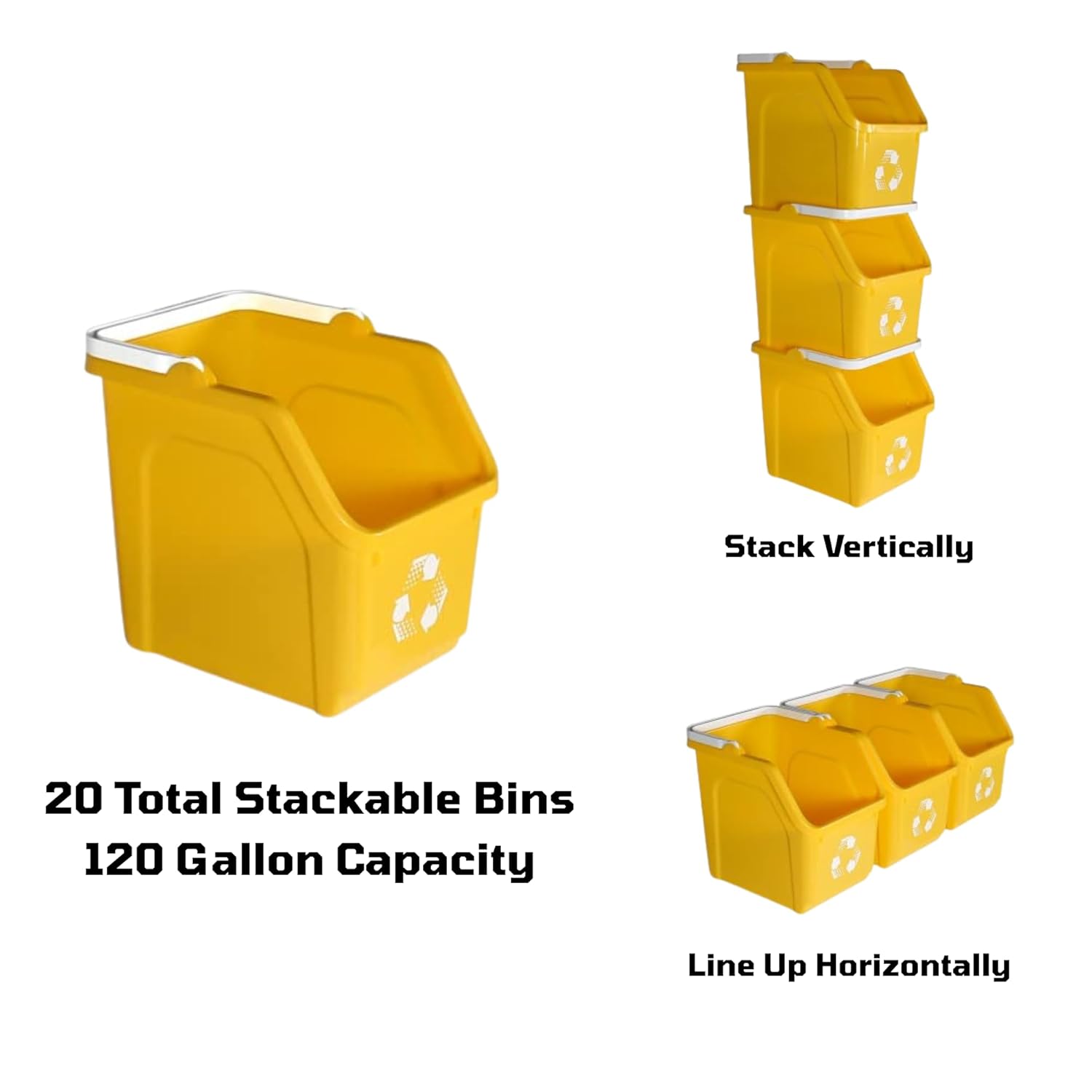 6 Gallon Stackable Recycling Bins for Homes, Garages, Offices Made of 100% Recycled Plastic - (Yellow, 20 Pack)