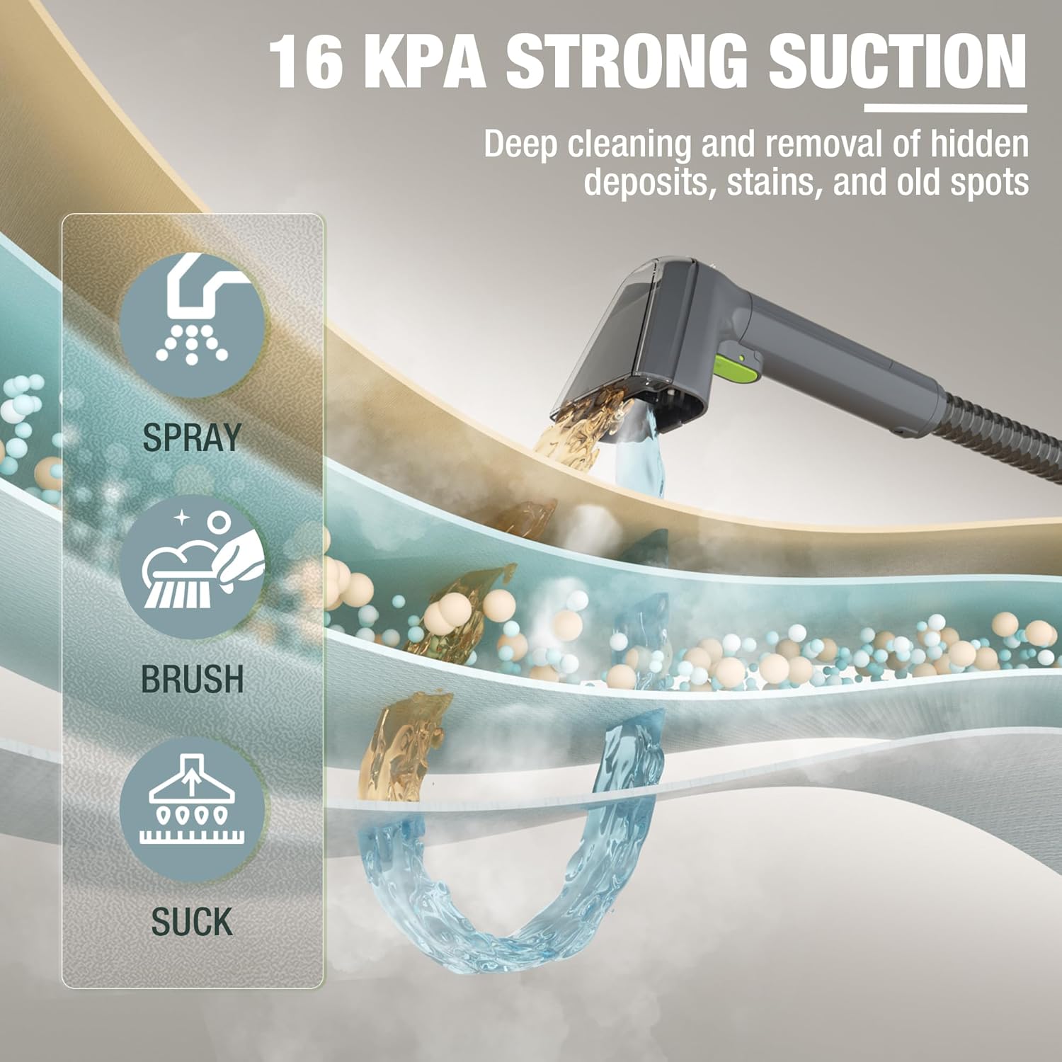 - Powerful Multi-Fabric Cleaner: This carpet steam cleaner comes with a dedicated, powerful multi-fabric cleaner. It tackles both everyday dirt and stubborn spots without damaging fabrics or irritating hands. The recommended cleaning ratio of Cleaner to Water is 1:35 to ensure safe and effective stain removal. Providing a professional-level cleaning experience that leaves your home refreshed and spotless