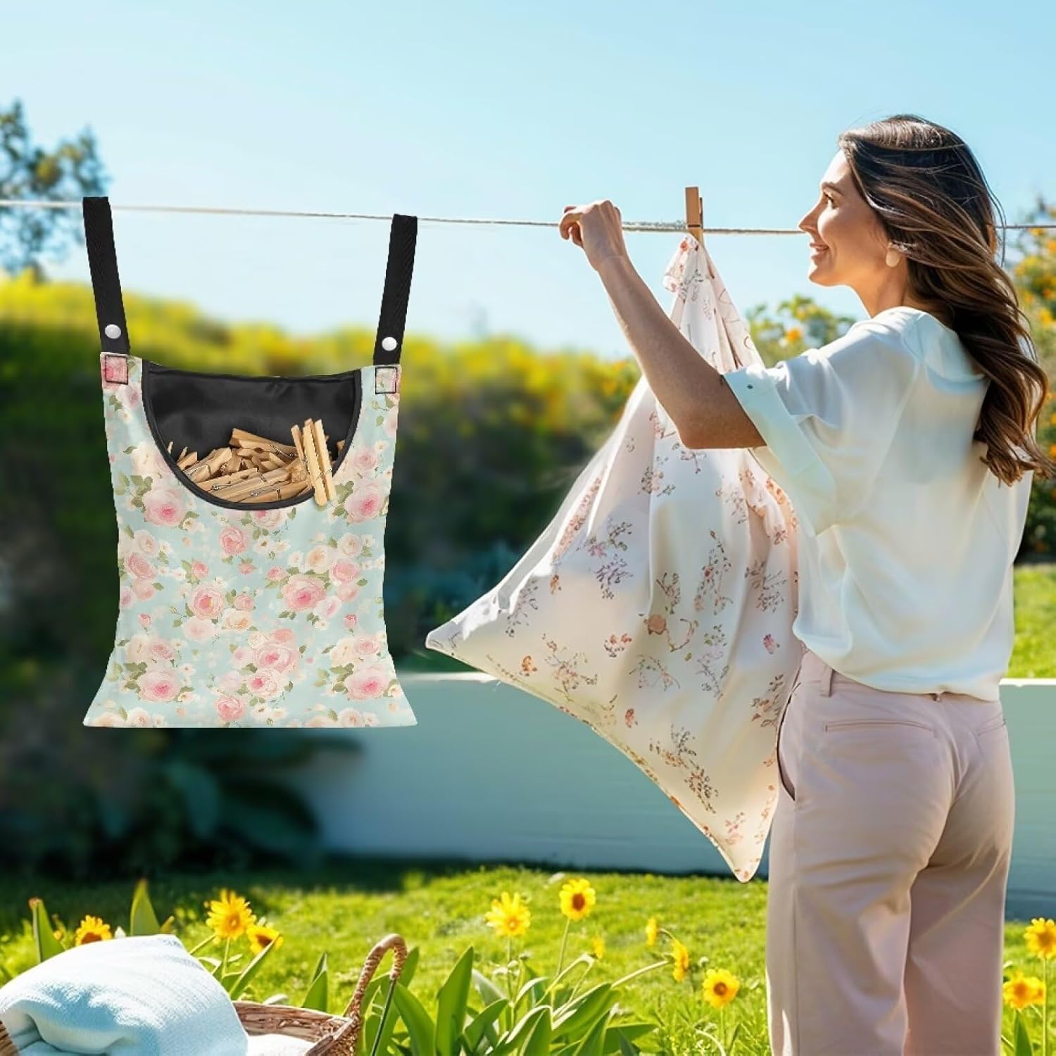 Clothes Pin Hanging Bag, Large Capacity Clothespin Bag Clothes Pin Hanging Bag Space-Saving Organize Clothespin Bag for Outdoor - Rose Pink Pattern