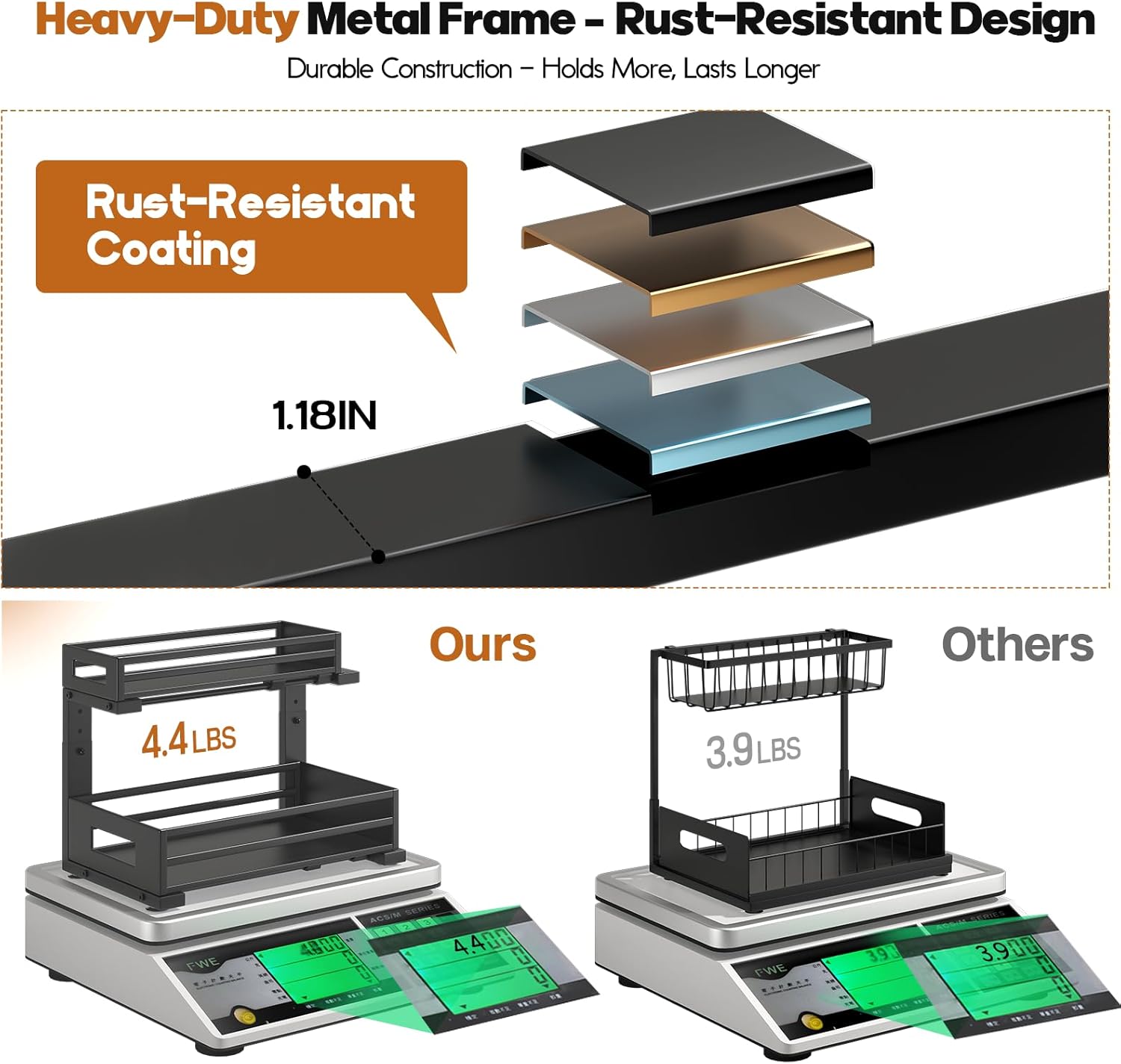 • 【Sturdy metal sheet frame& Rust-Proof】The under sink organizer is built from solid metal sheets with a strong frame and superior rust-resistant design, making it durable and ideal for long-term use in humid areas like kitchens,bathrooms and Laundry Room.