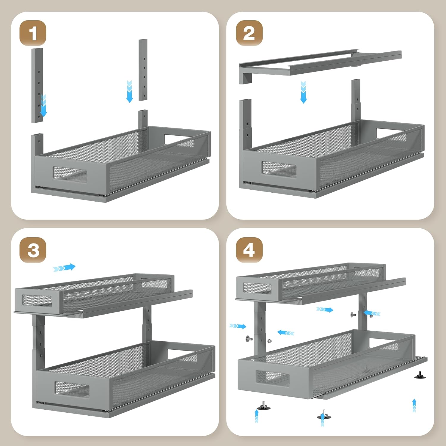 • 【Easy Installation】Say goodbye to complicated assembly! With 90% of the components pre-assembled, simply tighten 2 screws and your spacious undersink organizers is ready in just 40 seconds.
