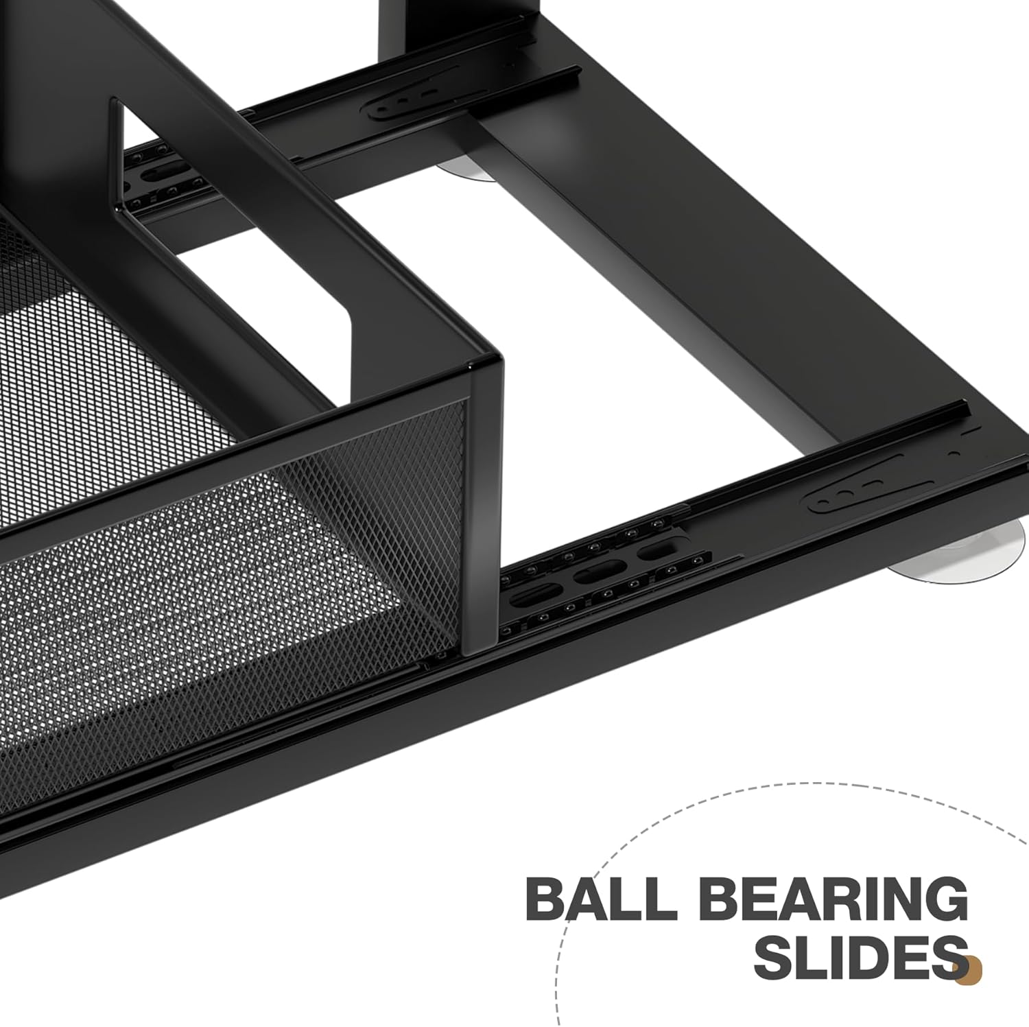 • 【2-Tier Pull Out,Grab Items with Ease】With 2-tiers smooth sliding, items on both levels glide effortlessly into view, so you can grab bottles, jars, and small items without bending, rummaging, or noise.