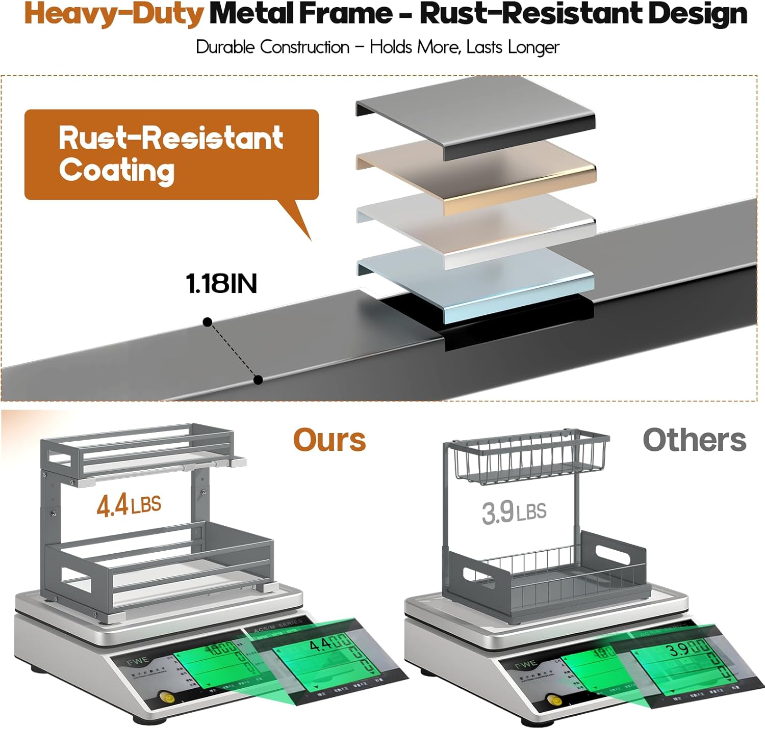 • 【Sturdy metal sheet frame& Rust-Proof】The under sink organizer is built from solid metal sheets with a strong frame and superior rust-resistant design, making it durable and ideal for long-term use in humid areas like kitchens,bathrooms and Laundry Room.