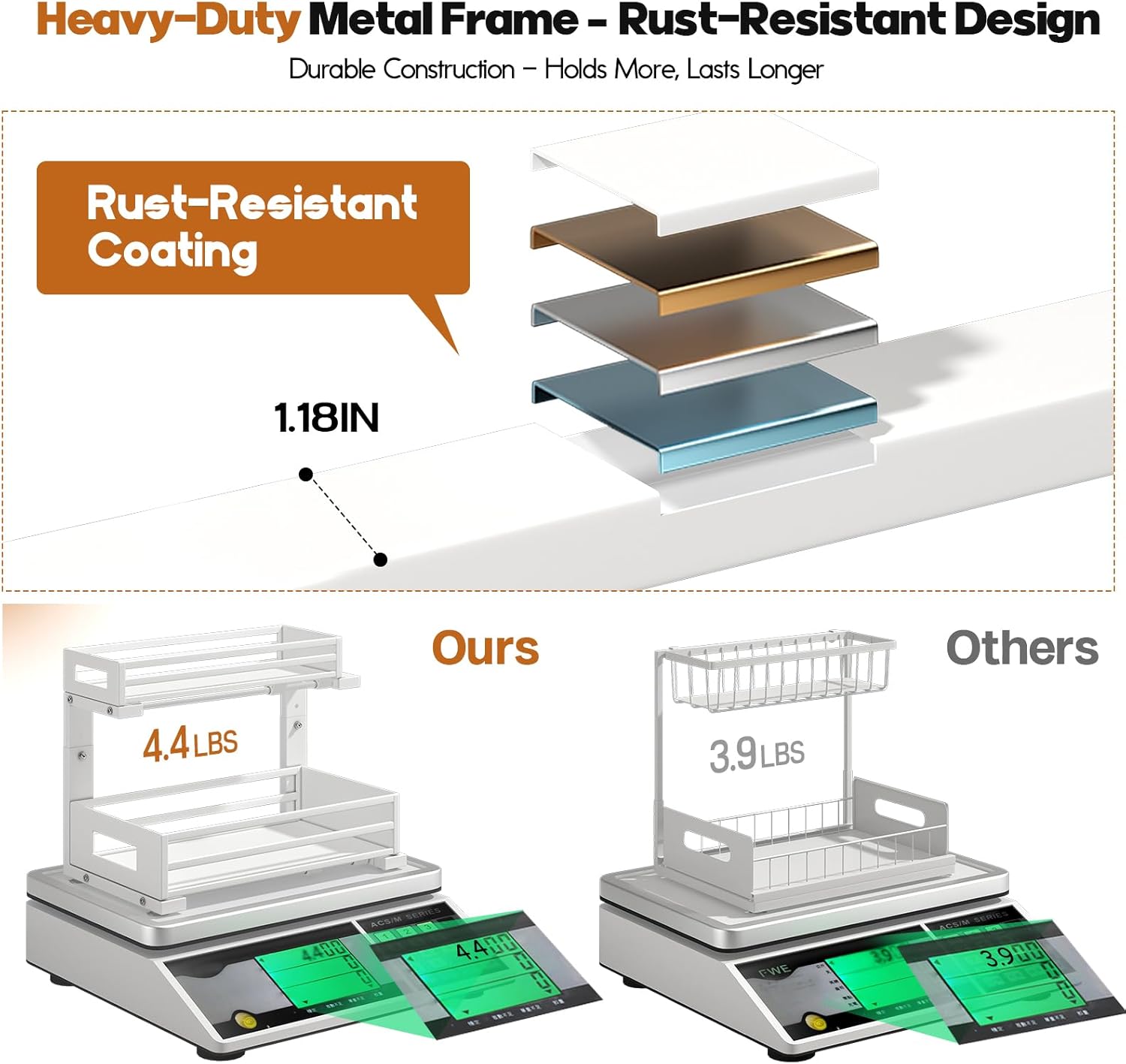 • 【Sturdy metal sheet frame&Rust-Proof】The under sink organizer is built from solid metal sheets with a strong frame and superior rust-resistant design, making it durable and ideal for long-term use in humid areas like kitchens,bathrooms and Laundry Room.
