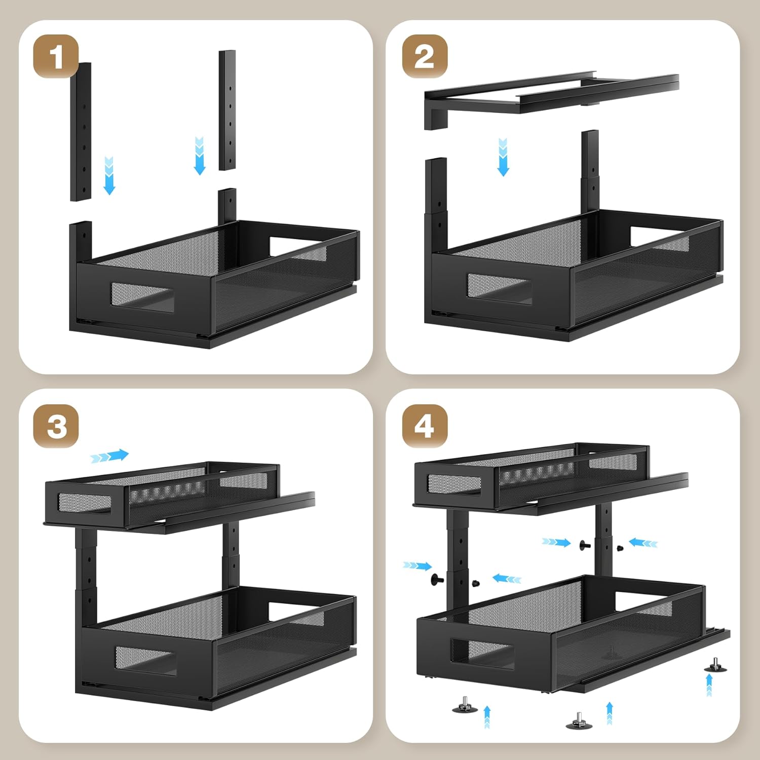• 【Easy Installation】Say goodbye to complicated assembly! With 90% of the components pre-assembled, simply tighten 2 screws and your spacious undersink organizers is ready in just 40 seconds.