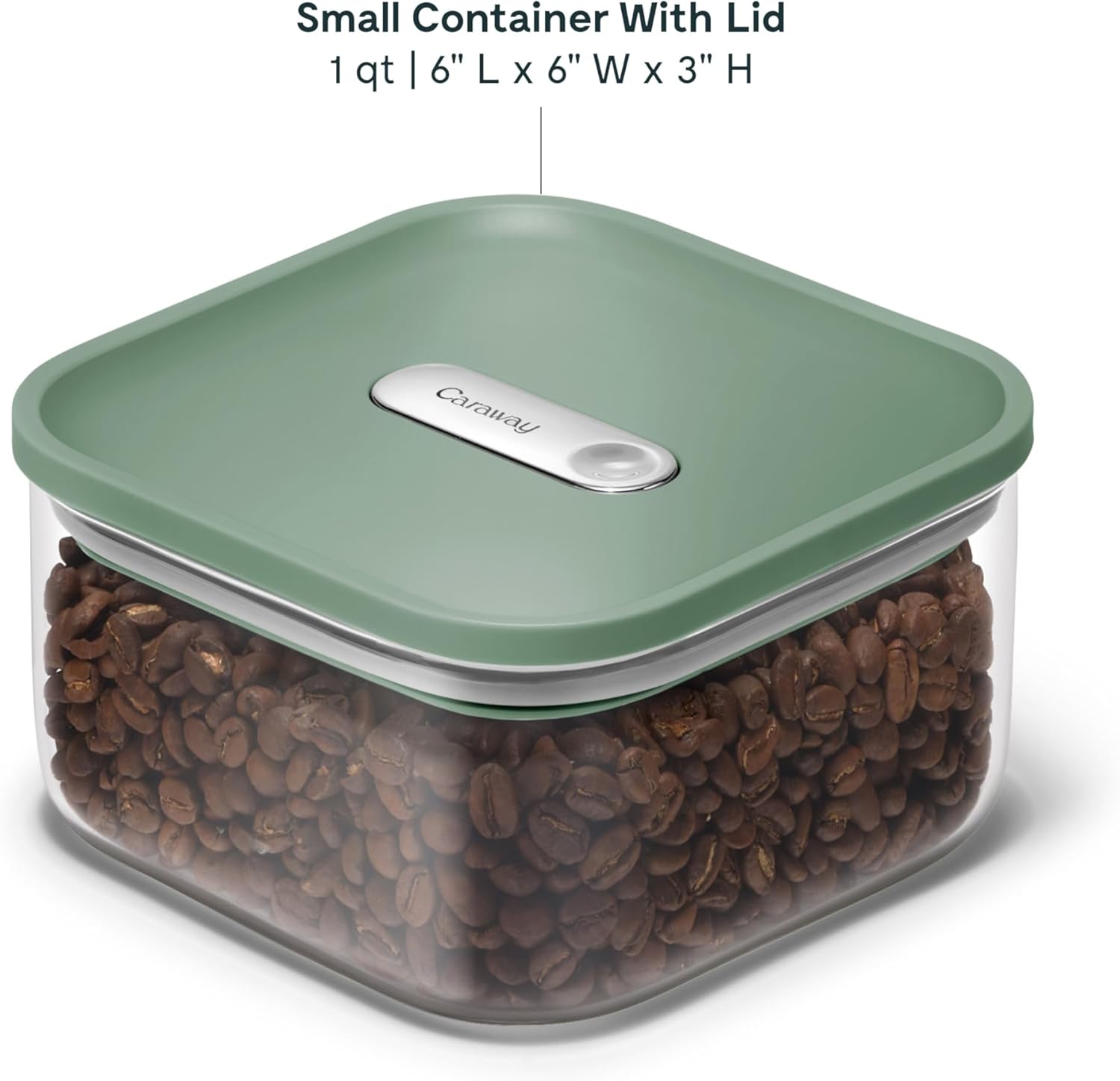 Caraway 1qt Glass Airtight Food Storage Container with Lid – Non-Toxic, BPA-Free Kitchen Storage Container – Stackable, Space-Saving Airtight Container for Dry Goods and More - Sage