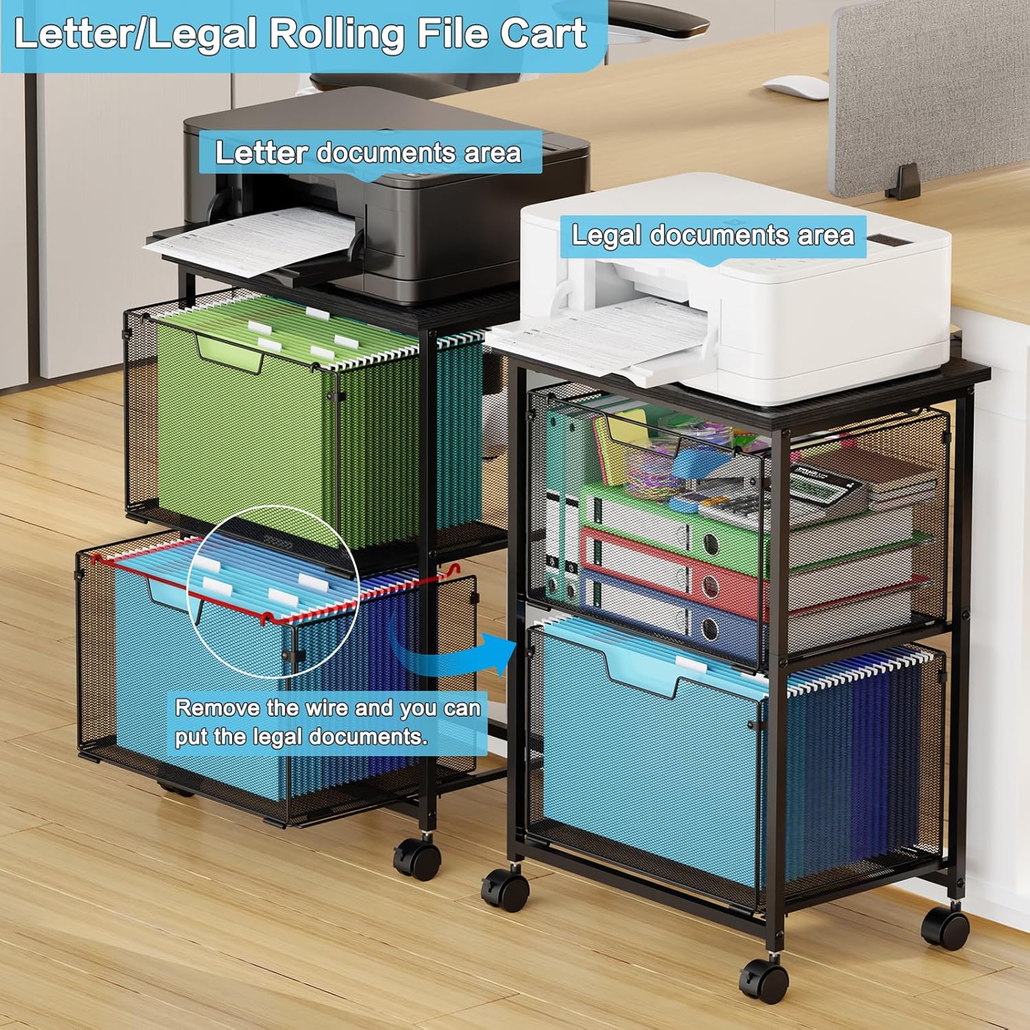 • Letter/Legal Size: This filing cabinet contains sturdy and smooth rails for hanging file folders, suitable for letter and legal size files. The rolling file cart also keeps papers, documents, printer and other office supplies organized at home/in office.