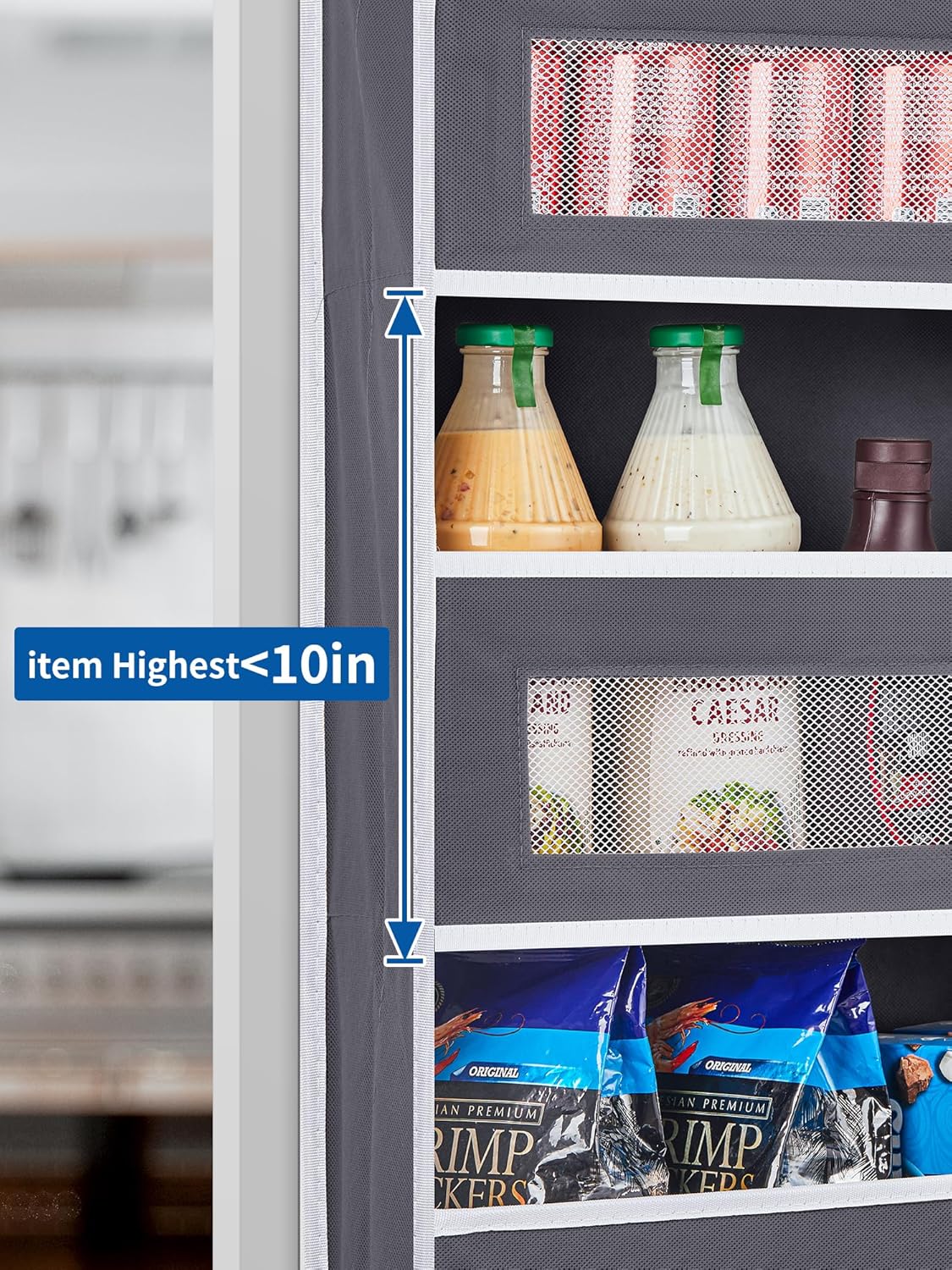 - Holds Its Shape Well: Unlike ordinary over door organizers, ours features reinforced stitching between every side pocket and built-in strengthened side panels to prevent tilting. Each shelf includes a durable cardboard base that maintains structural integrity, resisting sagging even under maximum 44 lb loads.