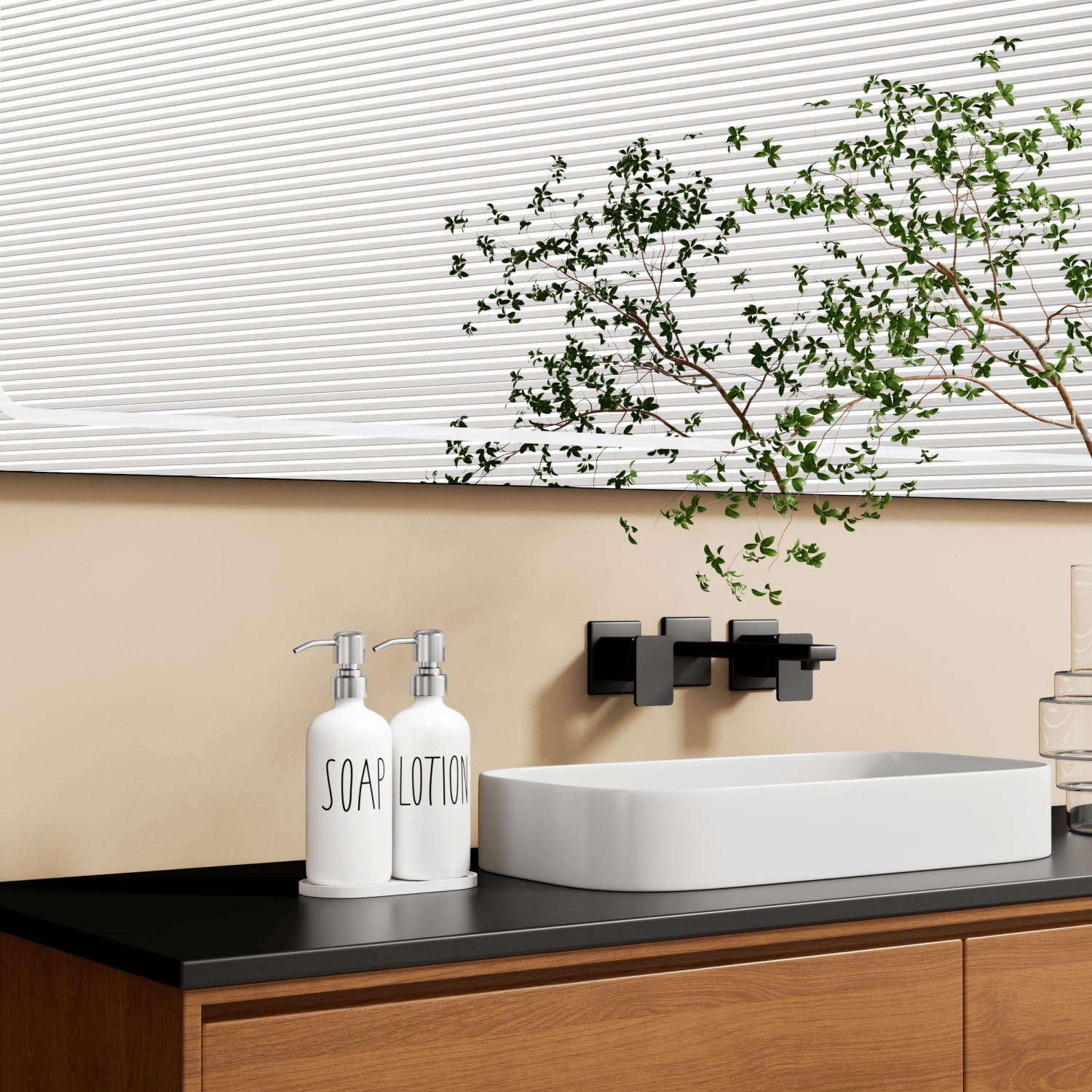 • [Farmhouse and Minimalist Style] These bathroom countertop soap dispensers are both decorative and practical. Whether you're looking for liquid hand soap dispenser or lotion dispenser for bathroom, this soap dispenser with tray adds that special touch to everyone's bathroom.