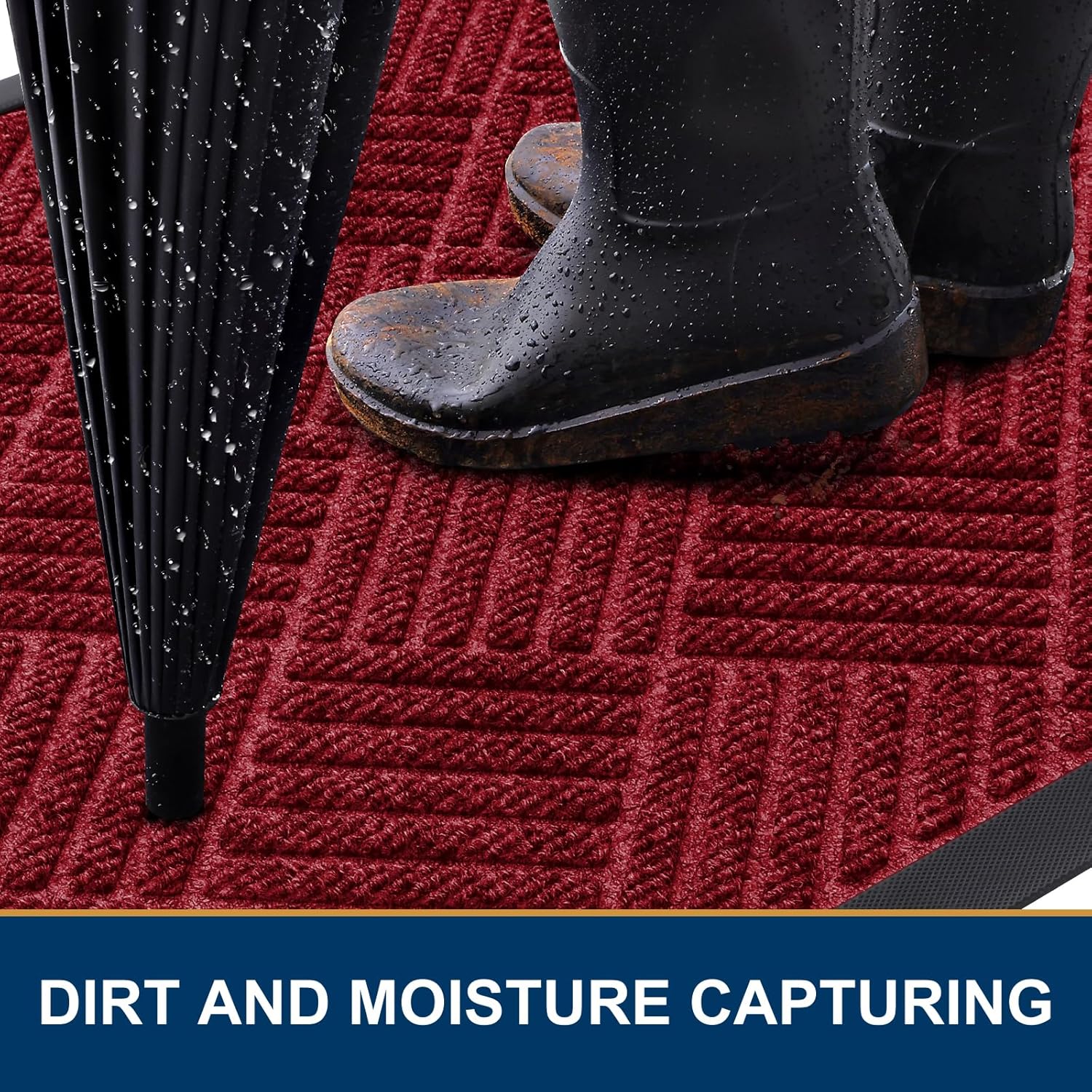 - Capture Dirt and Moisture: The surface of the Smiry door mat is crafted from woven polyester fabric. The deep grooves can effectively trap the dust, gravel, mud, sand and other clutter. The sturdy beveled rubber edge will not accumulate water. Even rainy, snowy or muddy weather will keep your home dry and clean