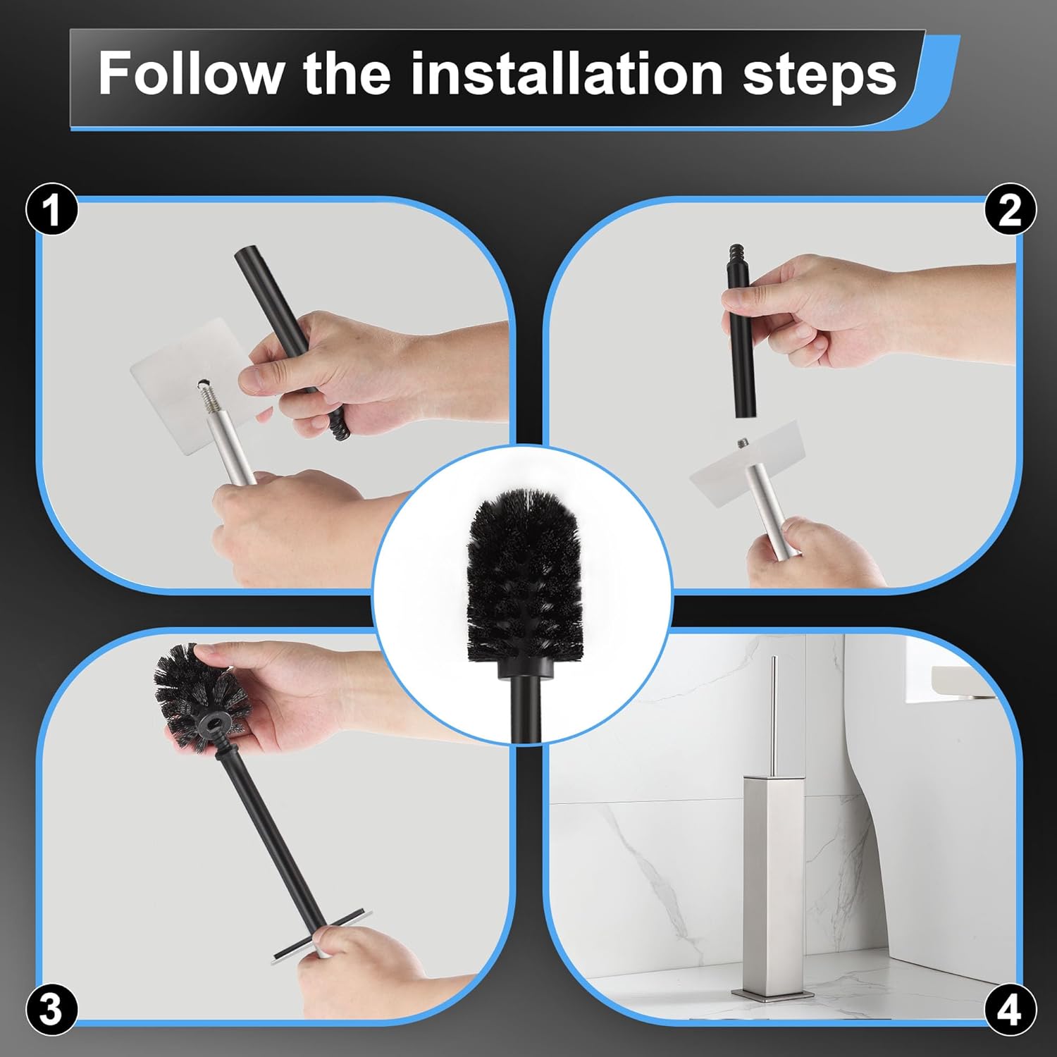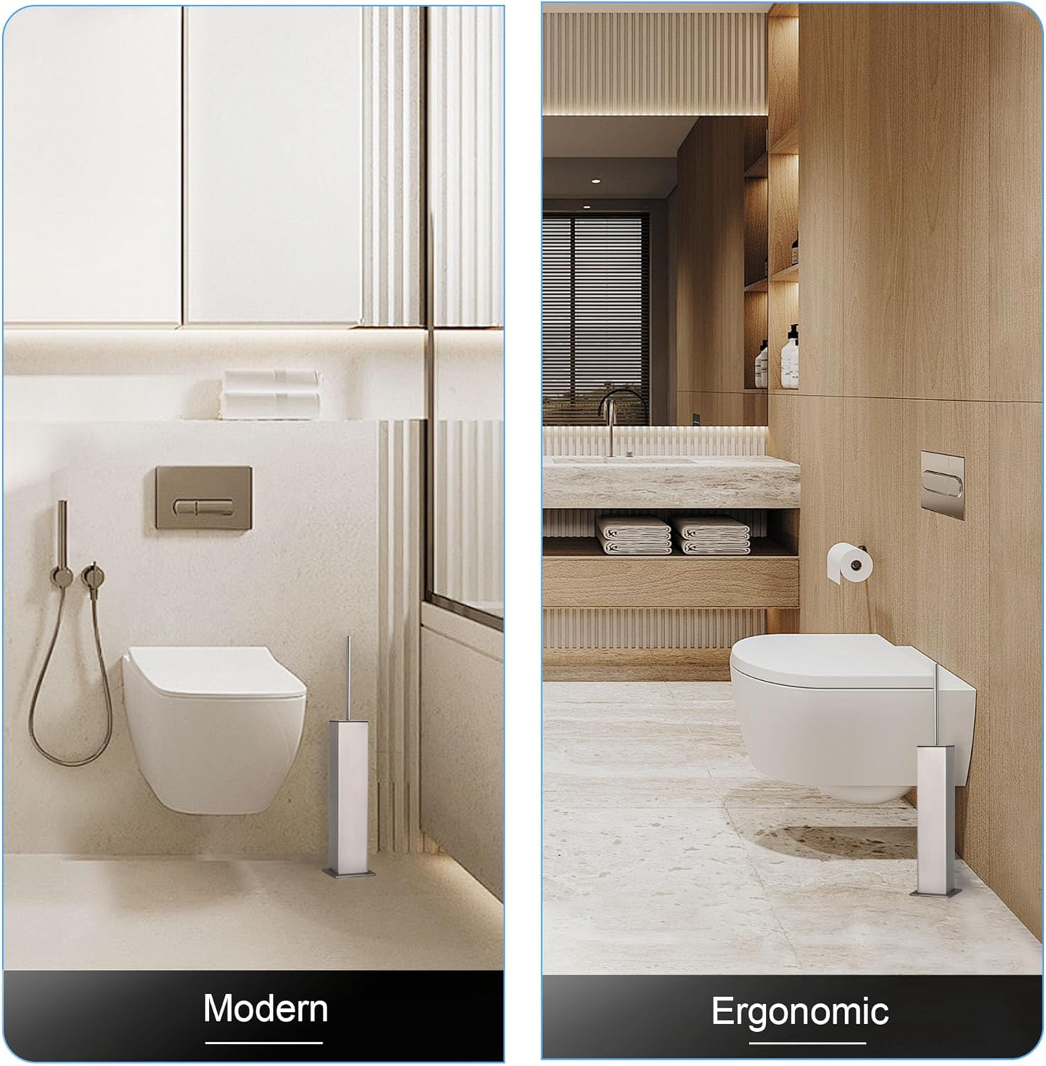 BVL Toilet Brush and Holder Set Brushed Nickel Stainless Steel 304 Square Freestanding Toilet Brush for Bathroom